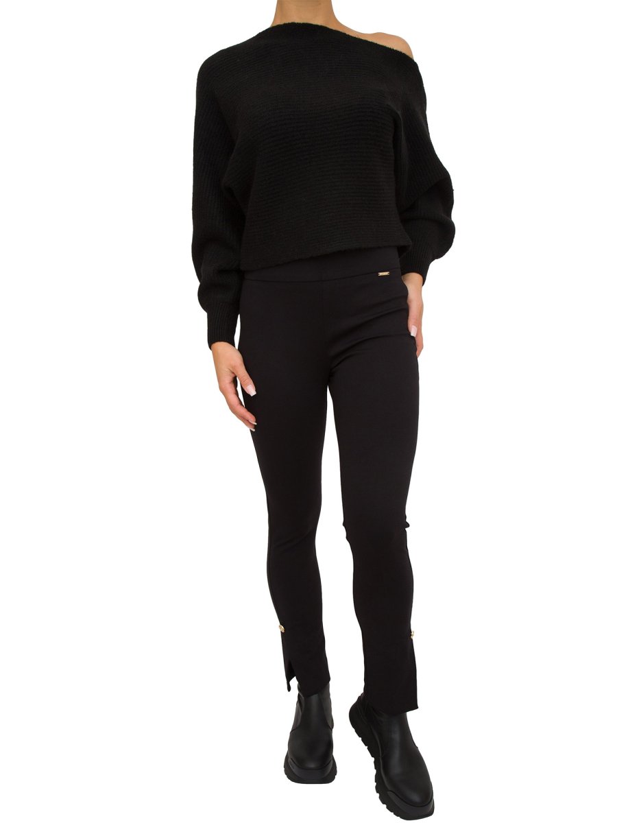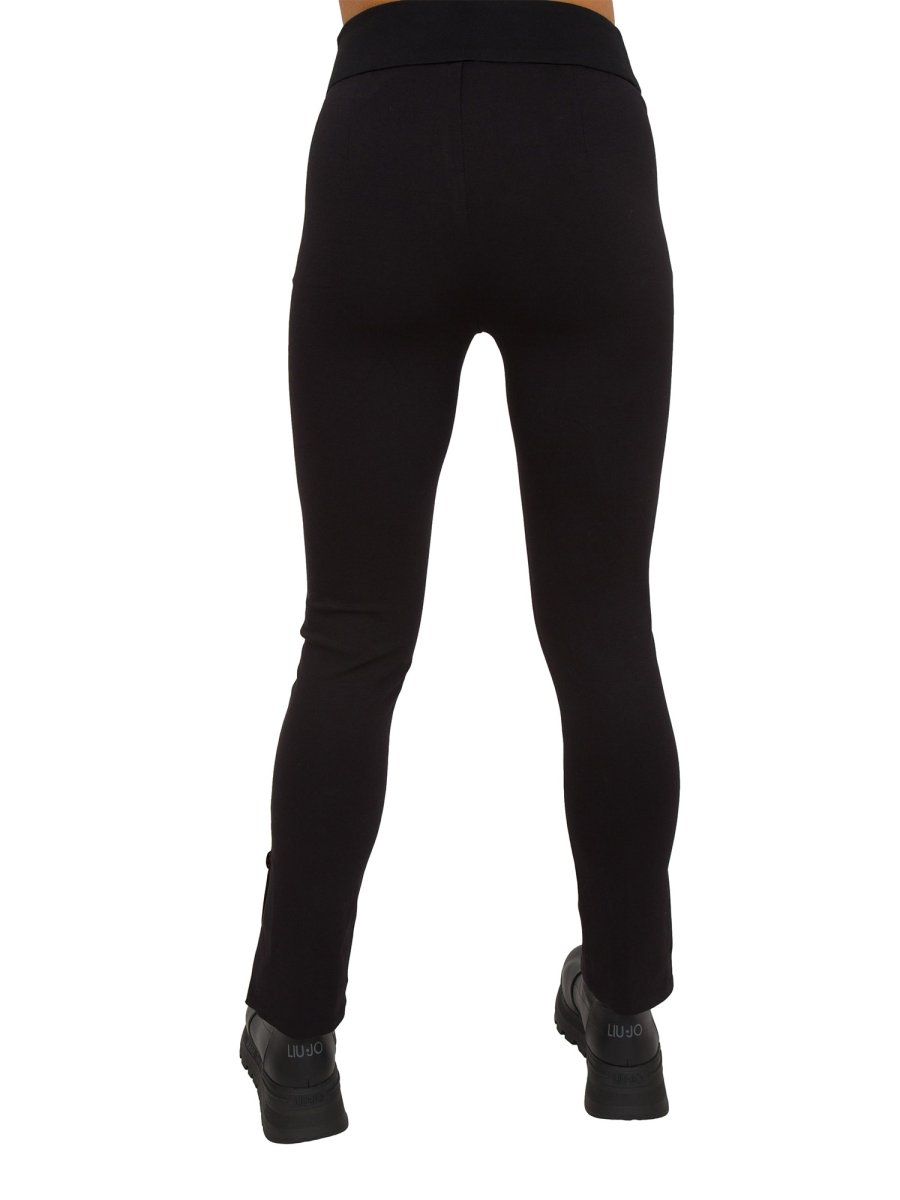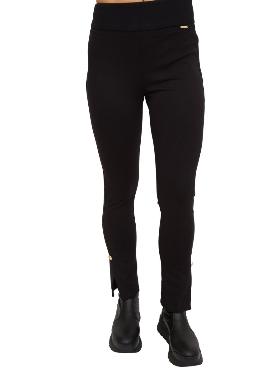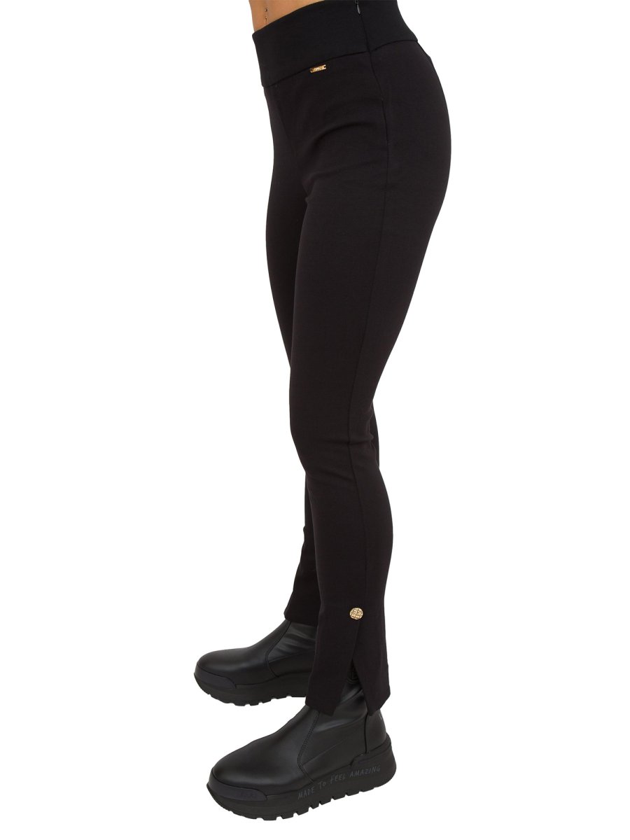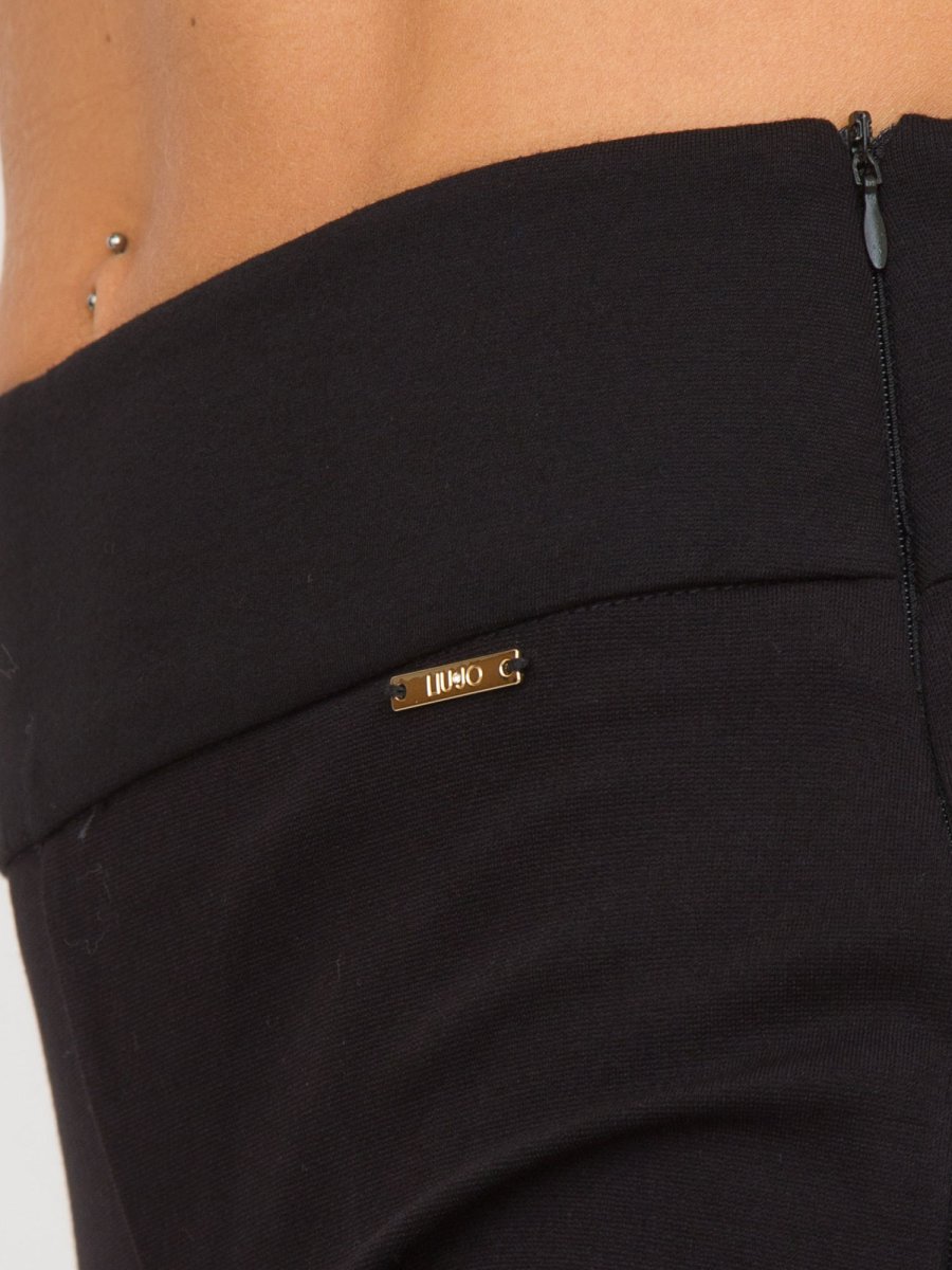 Pantaloni da donna LIU-JO in punto milano, vita alta gioiello, gamba asciutta e spacchetti sul fondo.