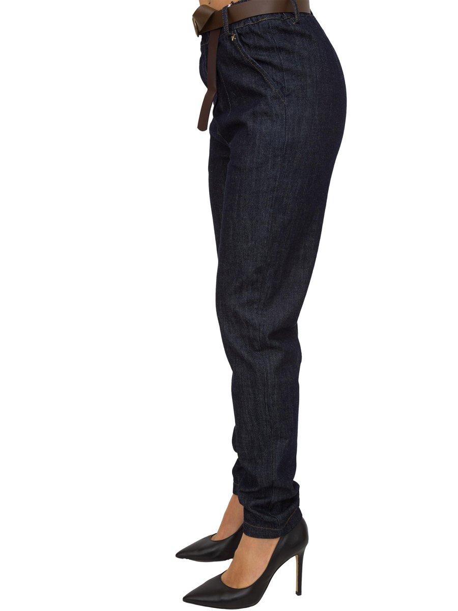 Jeans Kocca comodi donna con vita elasticizzata e cintura con fibbia metallica. Hanno una vestibilità morbida e si stringono sul fondo.