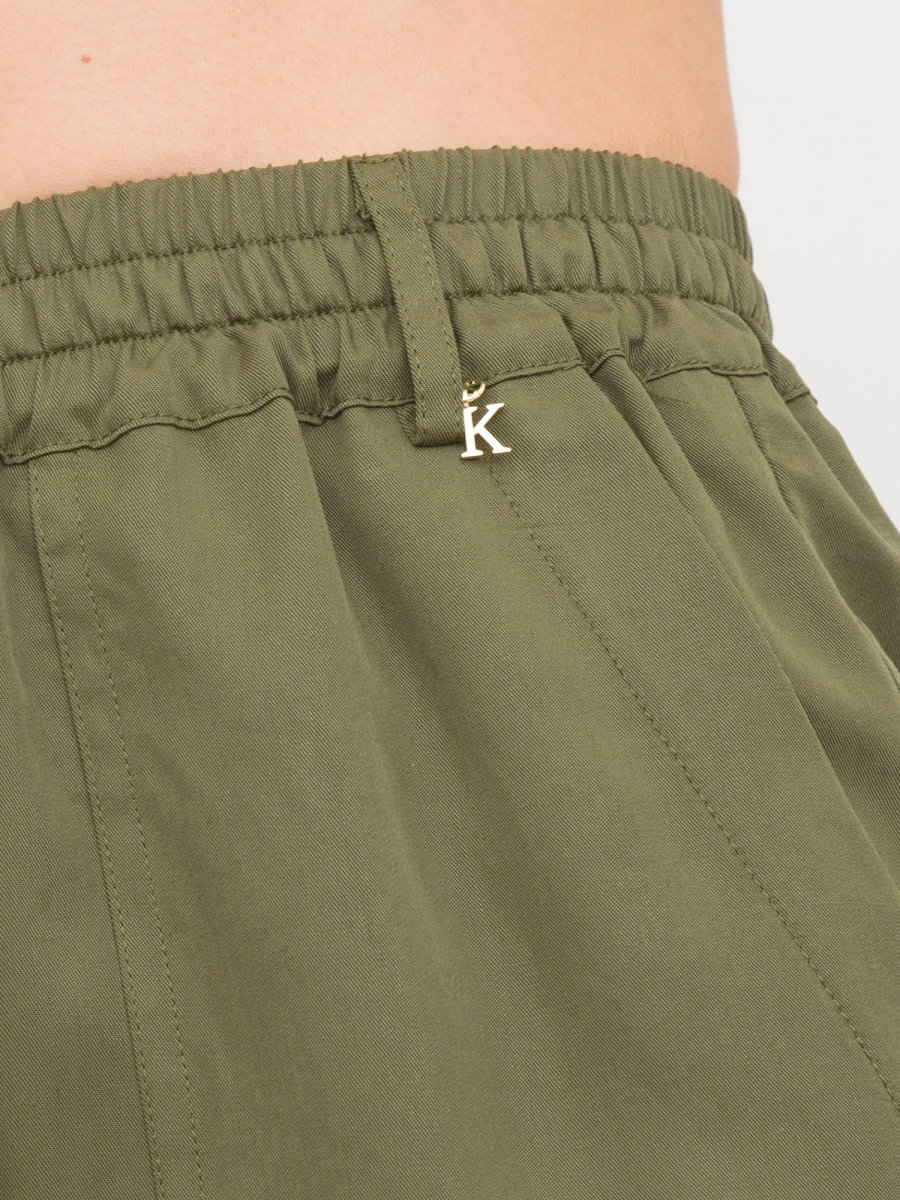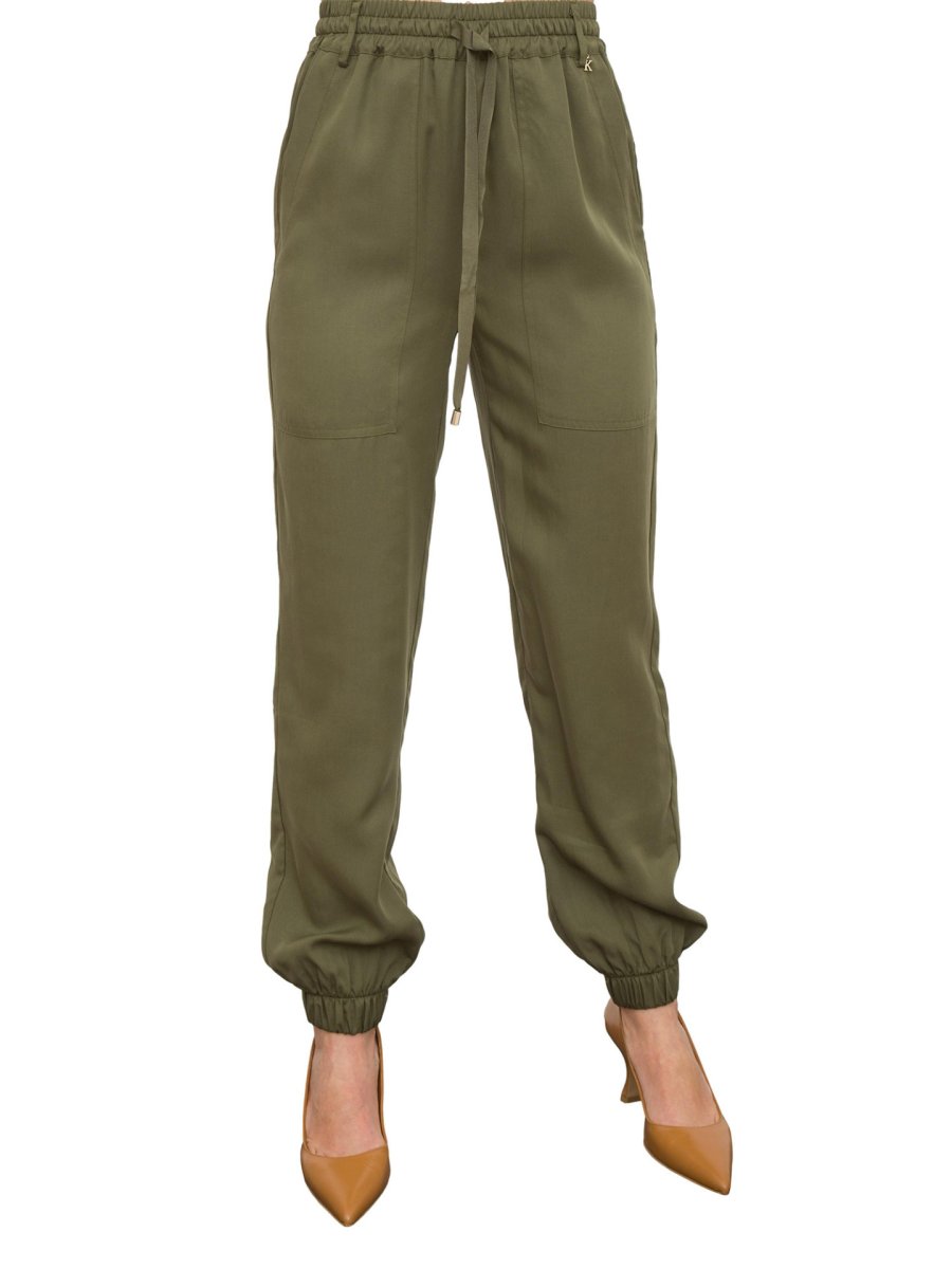 Pantaloni da donna in morbido tessuto lyocell, firmati Kocca, con vita e fondo gamba elasticizzati. Coulisse e laccetti in vita.
