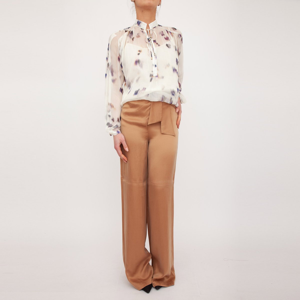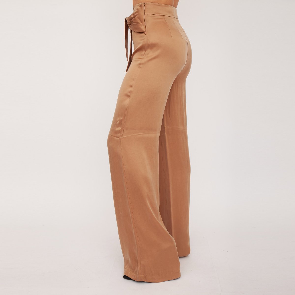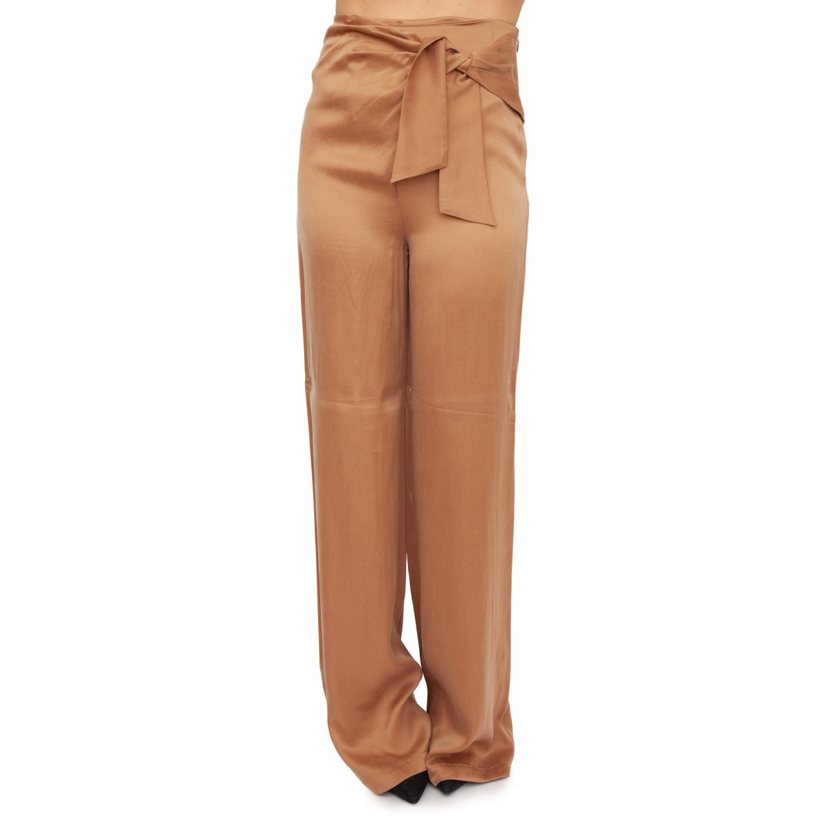 Pantalone dritto con nodo laterale in cupro.