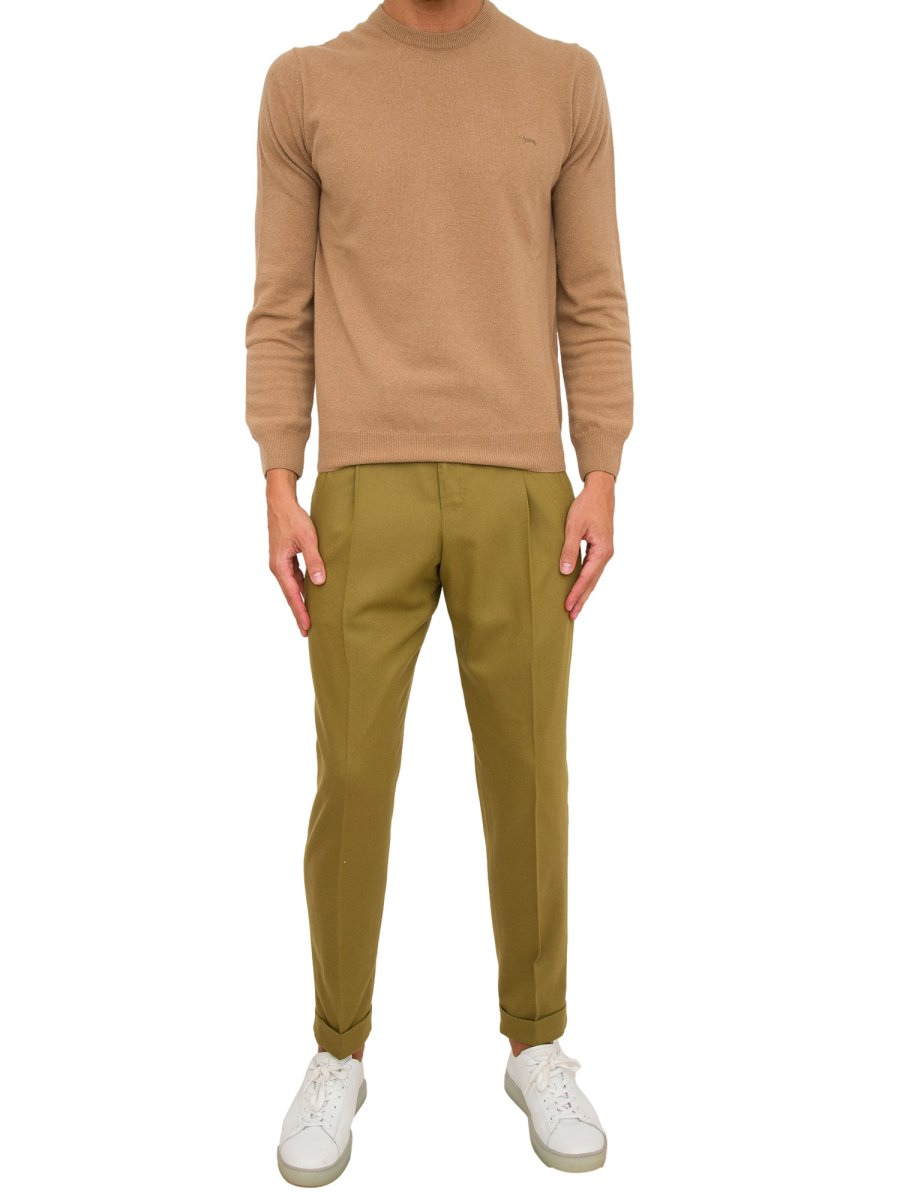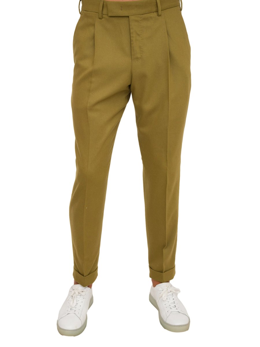 Pantaloni PT Torino in lana, orlo risvoltato, chiusura frontale nascosta, piega pressata e attacco portachiavi.