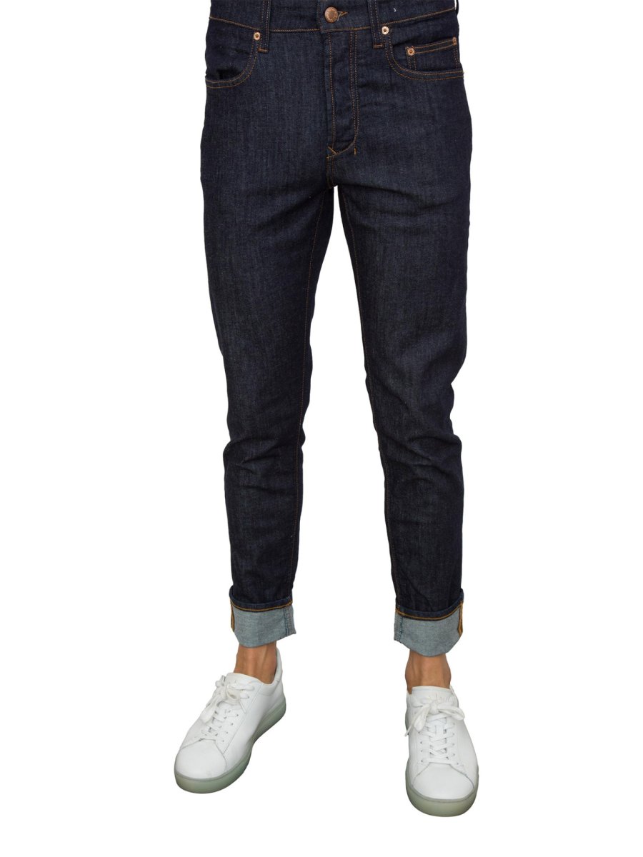Jeans 5 tasche da uomo Siviglia realizzato in cotone, vestibilità regular, risvolto alla caviglia e chiusura con zip e bottone.