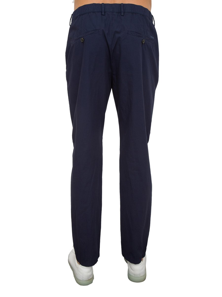 Pantaloni chino realizzatI in cotone stretch con gamba dritta che si ristringe al fondo, tasche alla francese sui fianchi e a filetto con bottone sul retro.