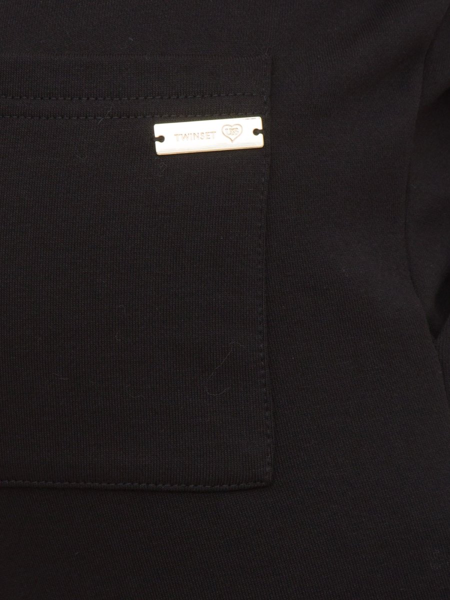 Pantaloni in felpa Twinset, dalla linea dritta, con fascia elastica e coulisse in vita, tasche alla francese, tasca sul retro con logo.