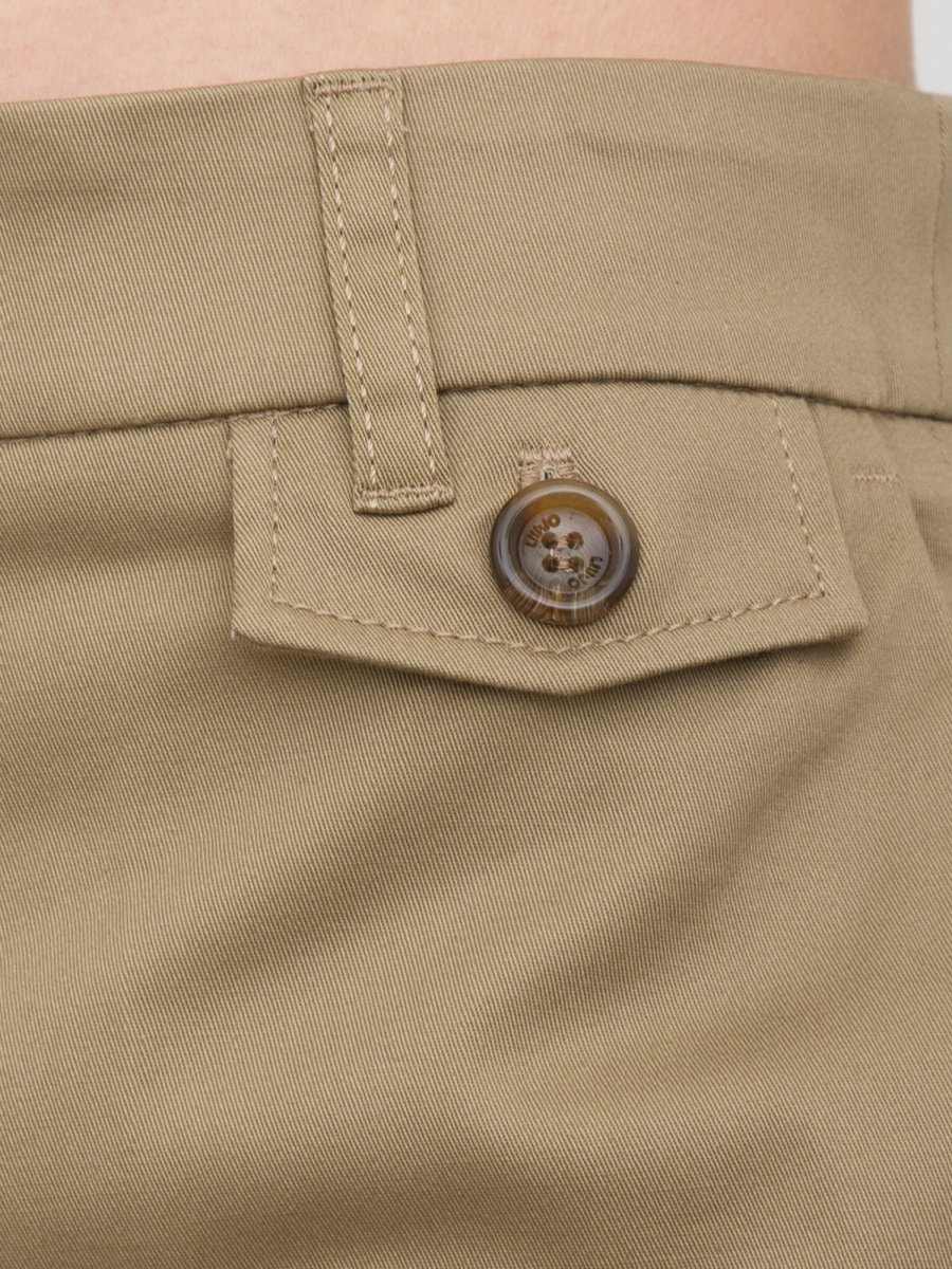 Брюки-чинос из габардина, застежка на пуговицы и потайную молнию, удобные карманы, прорезной карман сзади, шлевки для ремня, прямой крой и обработанный подол.