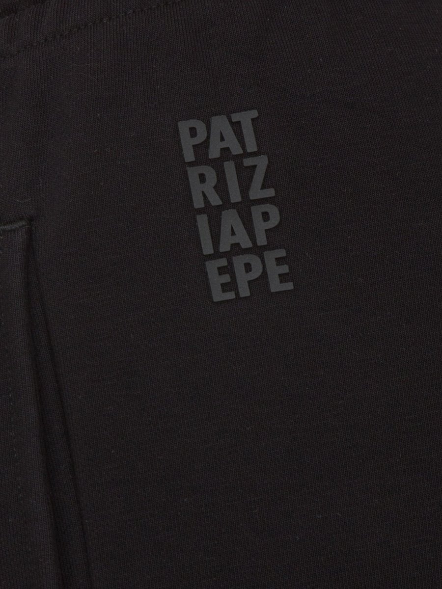 I pantaloni jogger realizzati in morbido cotone hanno lacci in vita rifiniti con finalini gold. Versatili e confortevoli, sono completati dalla stampa Patrizia Pepe. La vita è regolare.