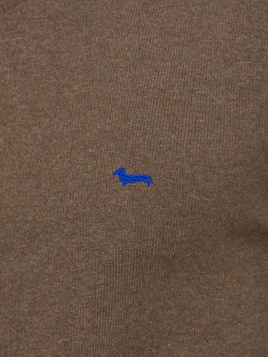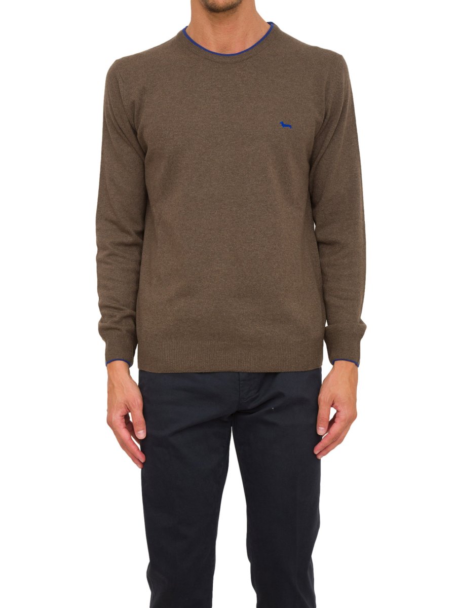 Maglia girocollo da uomo Harmont & Blaine in misto lana e viscosa. Polsi e fondo capo lavorati a costine, bordo a contrasto sul collo e sui polsi e logo del bassotto ricamato sul petto.