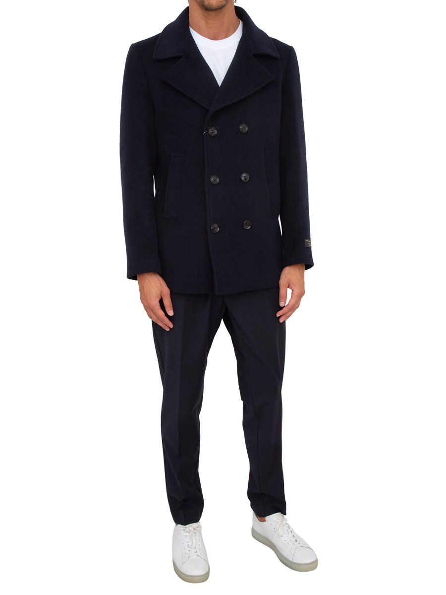 Cappotto uomo Liu-Jo, modello peacoat doppiopetto. Realizzato in filati misto lana presenta comode tasche, spacchetto sul dietro e chiusura doppiopetto con bottoni logati. Regula fit.