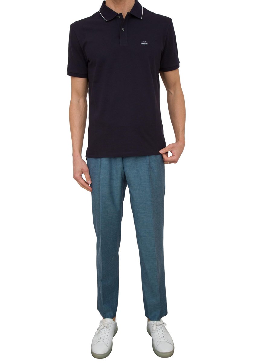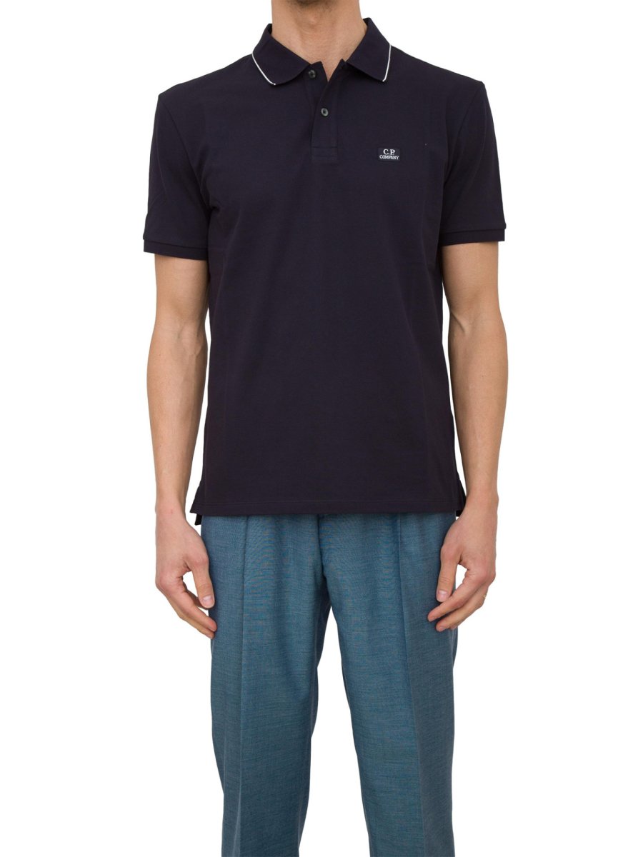 Мужская футболка-поло C.P. Company из эластичного хлопка с вышитым логотипом на груди. Модель классического кроя, ребристый воротник с контрастной отделкой и фирменные пуговицы.