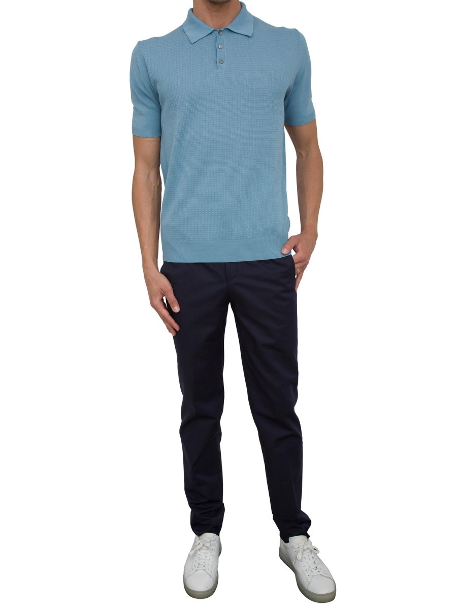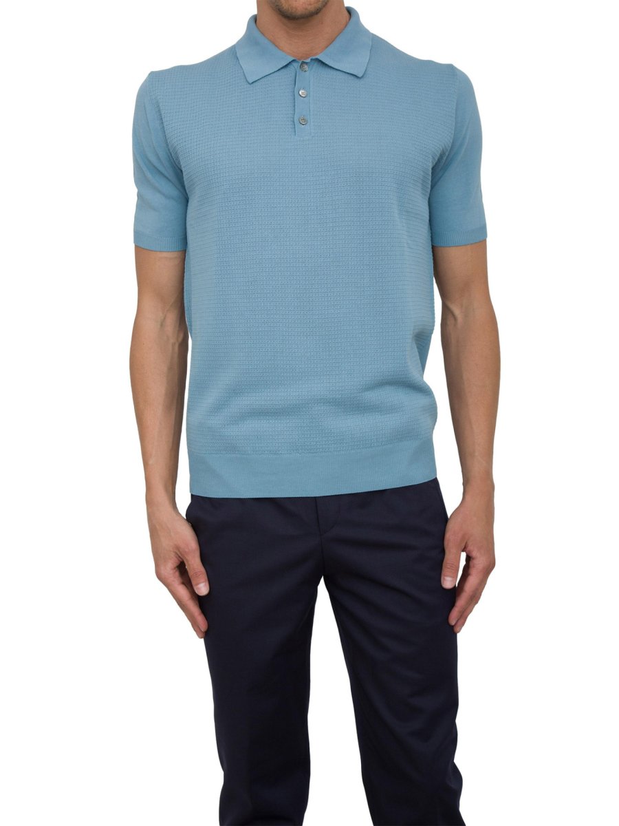 Мужская рубашка поло с короткими рукавами Aiace Galassi из хлопкового трикотажа с обработкой ткани, создающей рельефный рисунок и придающей рубашке поло характерный и современный визуальный эффект.