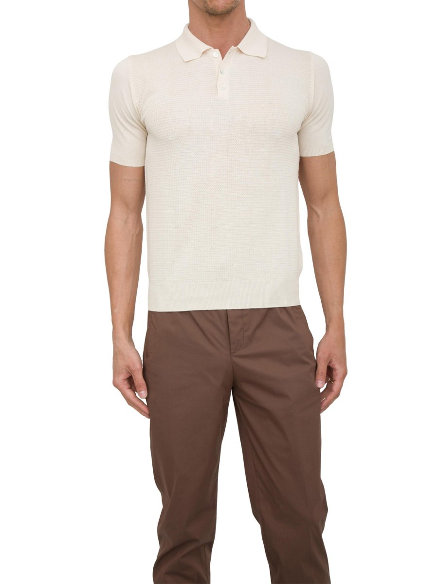 Мужская рубашка поло с короткими рукавами Aiace Galassi из хлопкового трикотажа с обработкой ткани, создающей рельефный рисунок и придающей рубашке поло характерный и современный визуальный эффект.