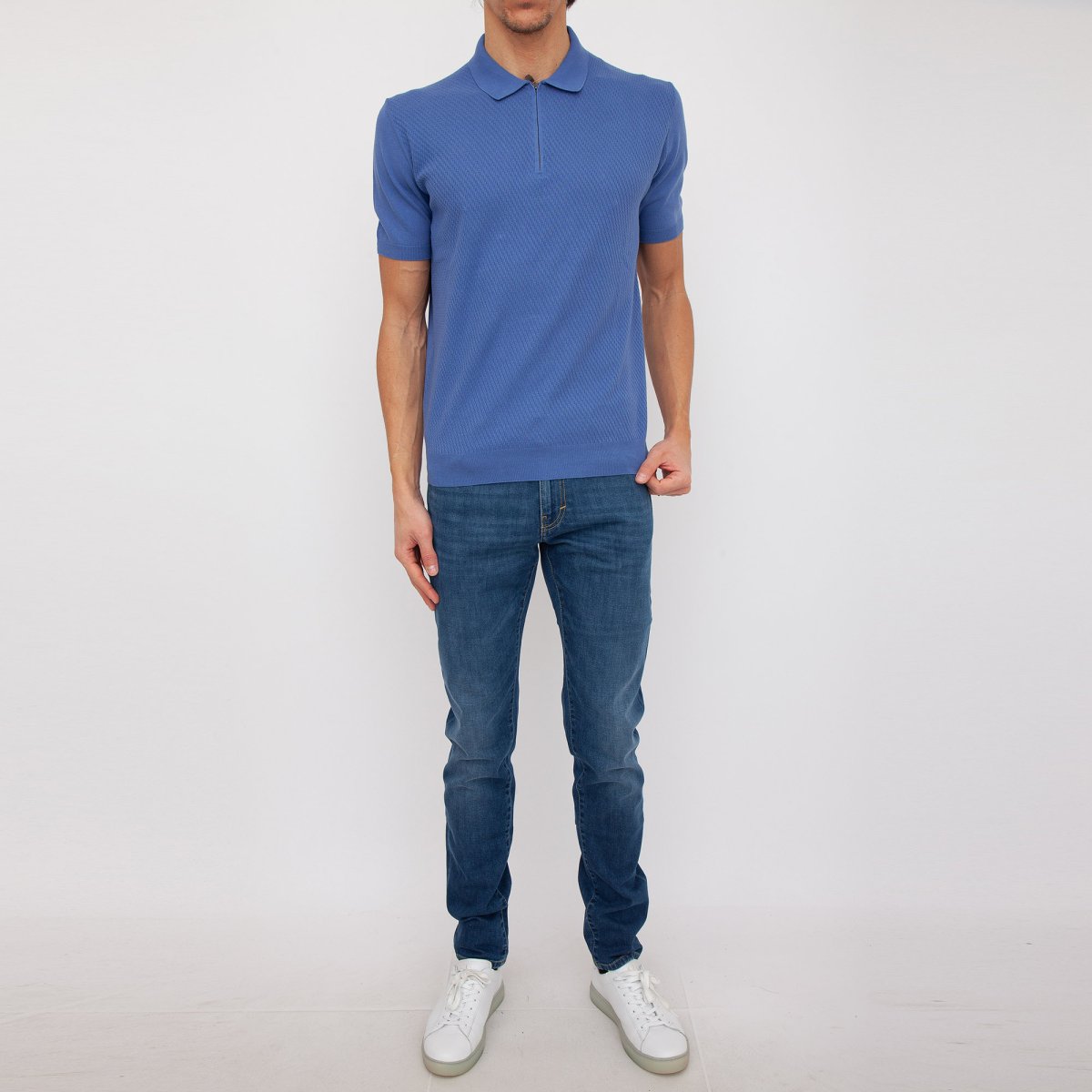 Polo Etro in cotone, design lavorato a maglia, bordo con lavorazione a coste, colletto stile polo, falsatura frontale con abbottonatura, maniche corte e orlo dritto.