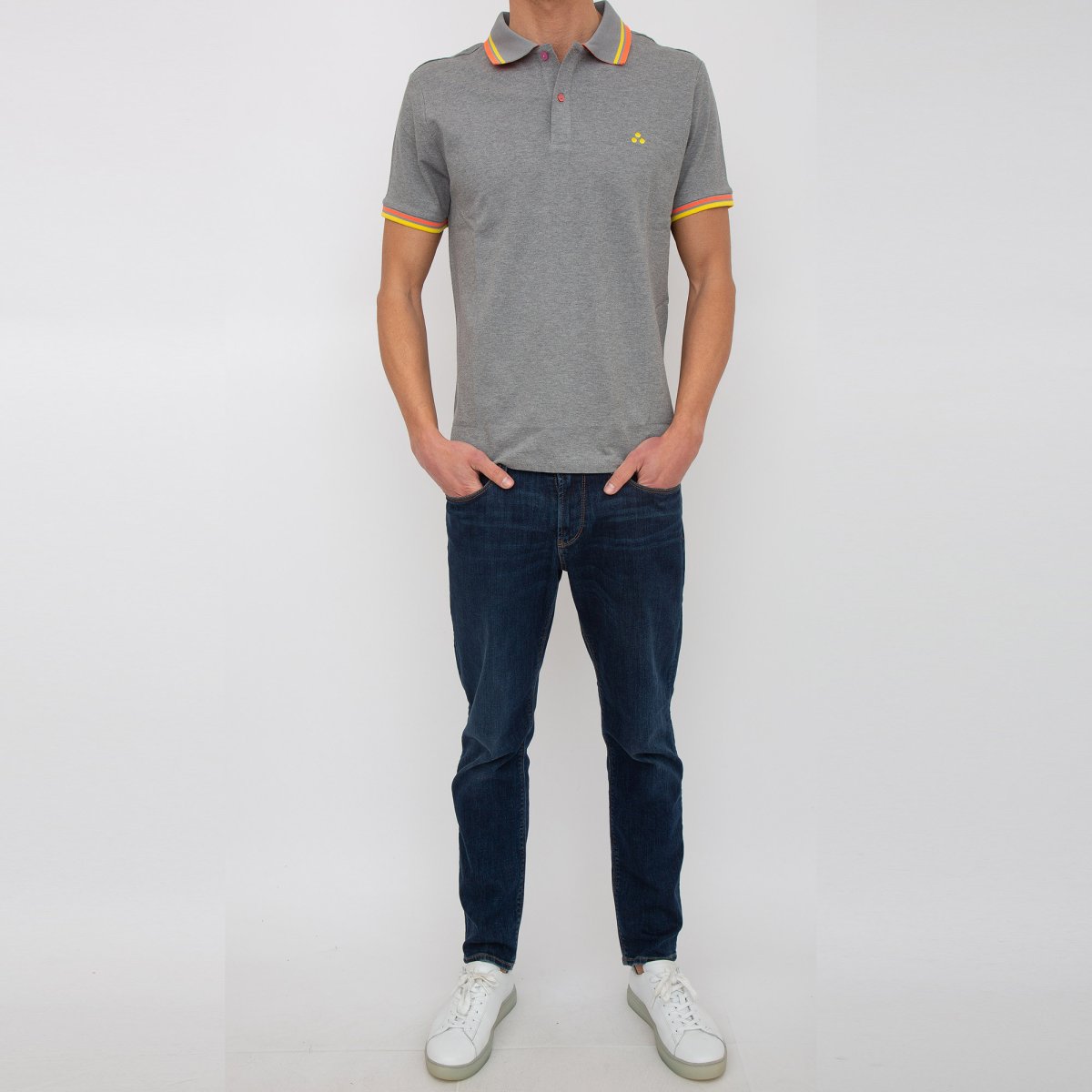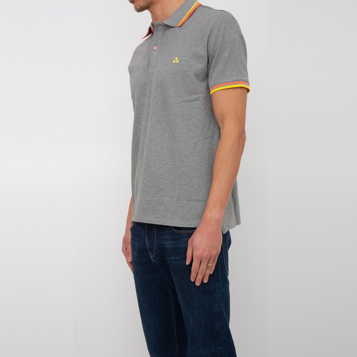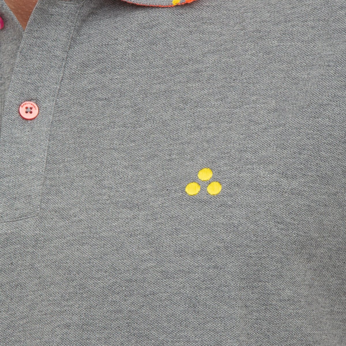 Polo in piquet stretch di cotone, morbida al tatto e confortevole. Colletto classico con inserti colorati, bottoni e logo multicolor ricamato sul davanti.