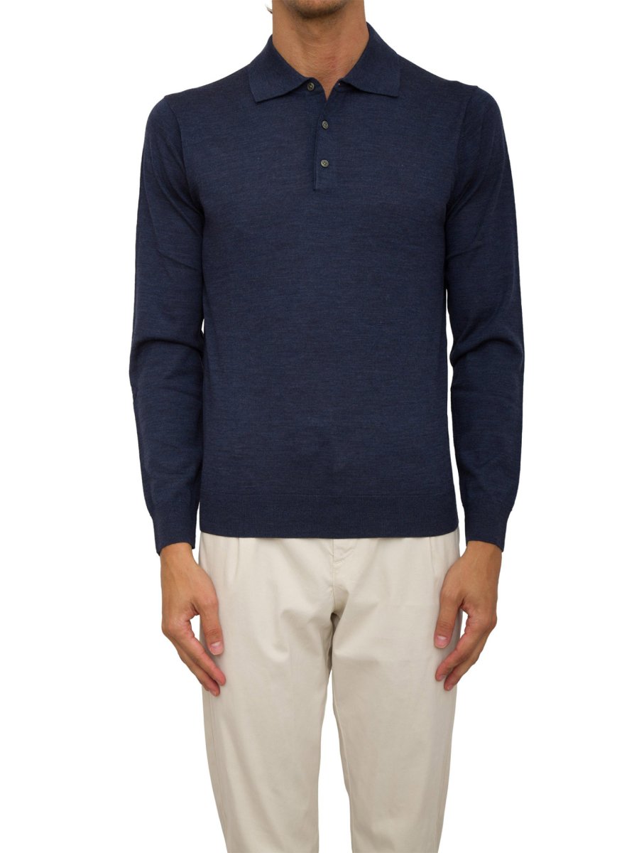 Чоловіча сорочка поло Corneliani з натуральної вовни з довгим рукавом. Комір-поло з трьома гудзиками.