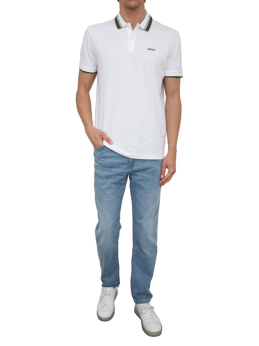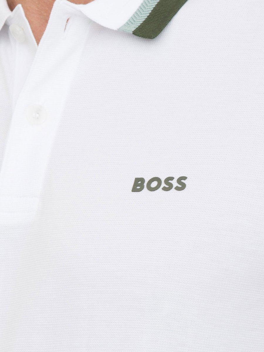 Мужская рубашка-поло прямого кроя BOSS из дышащего эластичного хлопкового пике, обеспечивающего комфорт и свободу движений. Полосатая отделка.