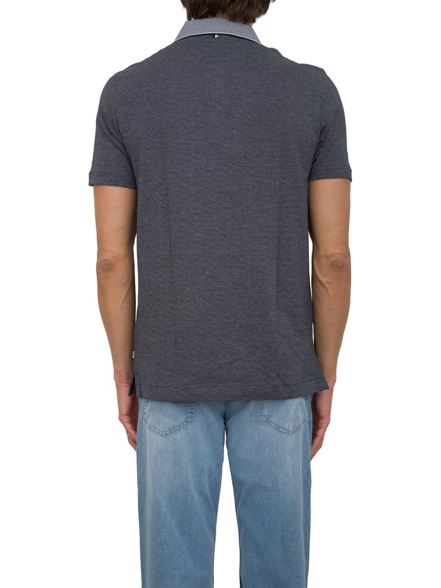Мужская рубашка-поло BOSS облегающего кроя. Это поло с контрастным воротником и полосатой отделкой изготовлено из дышащего хлопка с двухцветной отделкой.