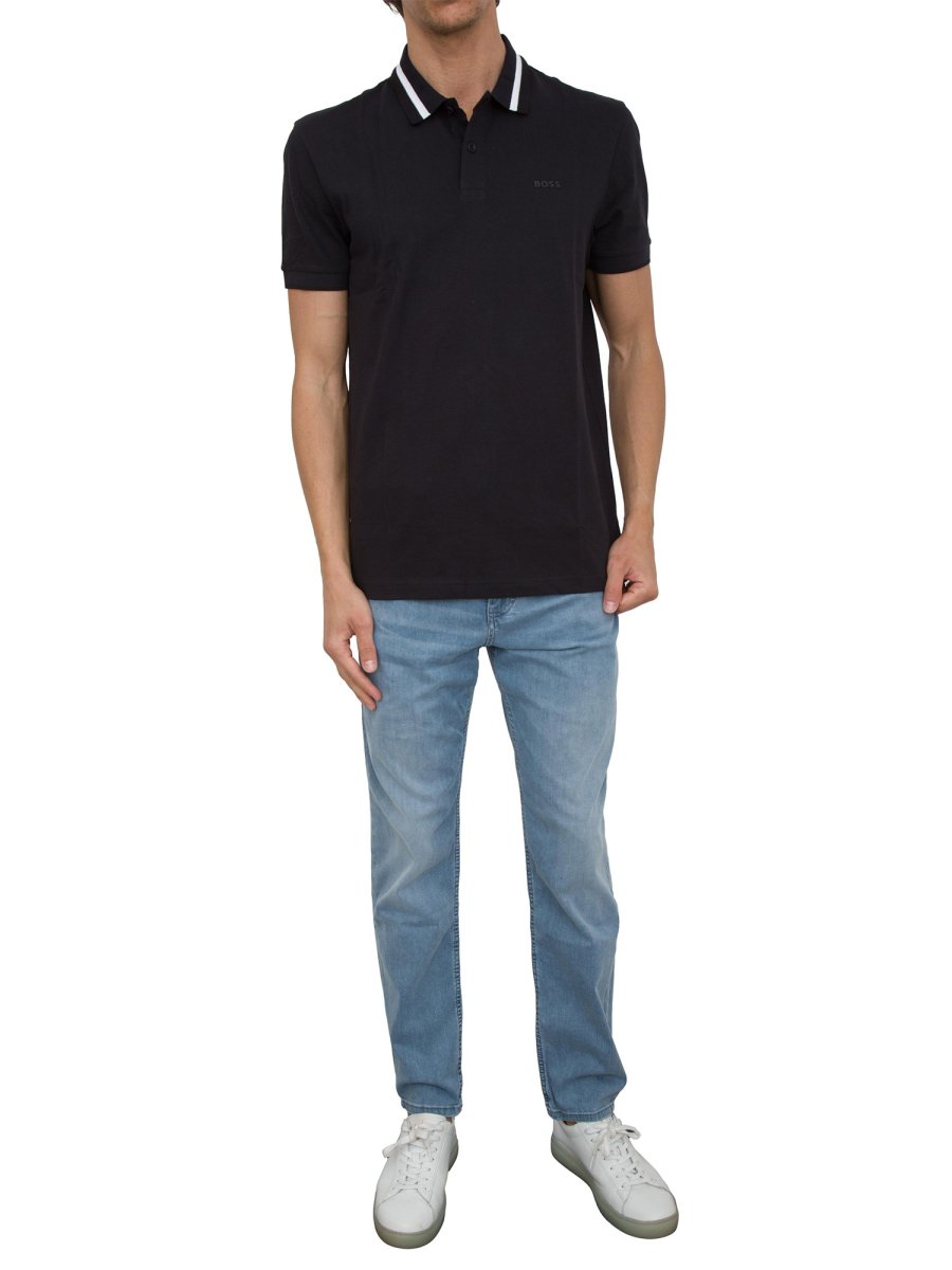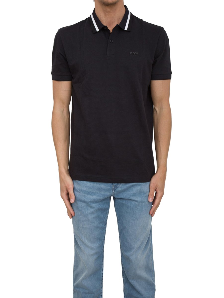 Мужская рубашка-поло прямого кроя BOSS из дышащего эластичного хлопкового пике, обеспечивающего комфорт и свободу движений. Полосатая отделка.