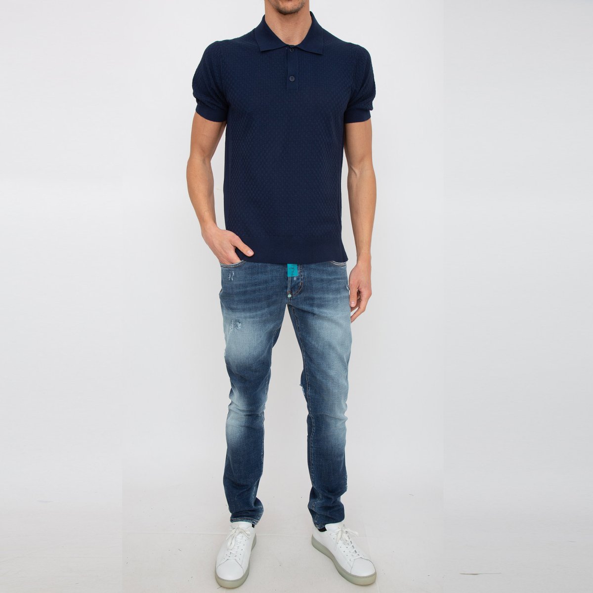 Polo da uomo è realizzata in un blend di lino e cotone 14 GG dalla lavorazione damier. La maglia presenta bande in tinta unita sui lati dettagliate dall'iconico lettering Bikkembergs.