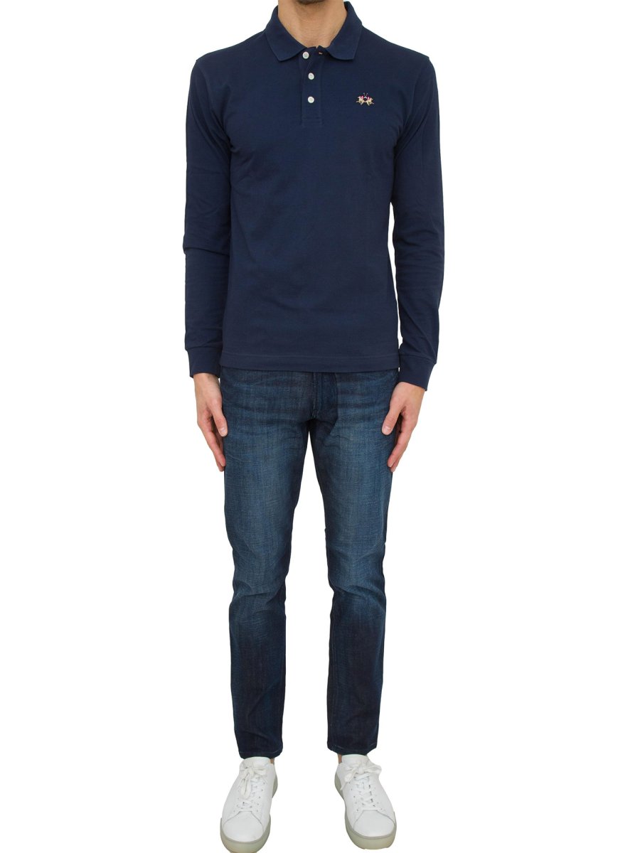 - Мужское поло LA MARTINA MAN POLO L/S PIQUET STRETCH BLU