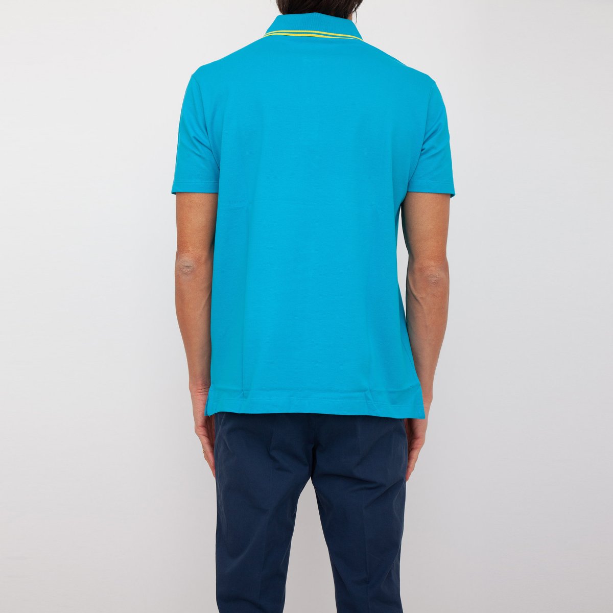 Polo in cotone piqué con dettagli fluo. Colletto a costine, regular fit, manica corta e chiusura a bottoni.