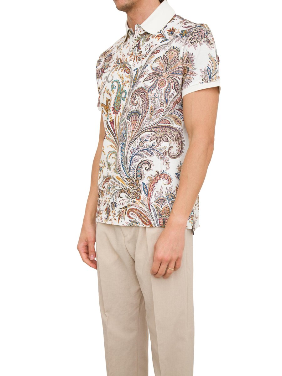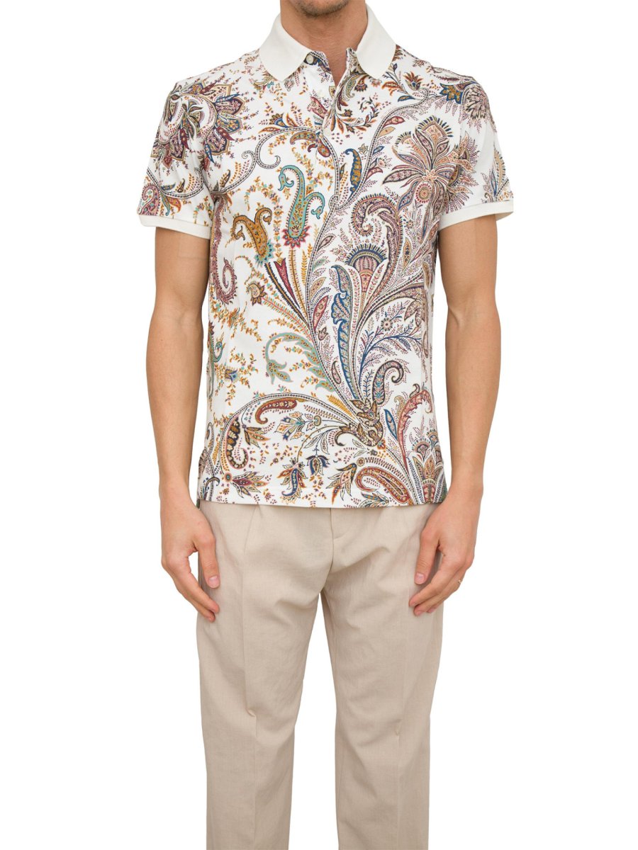 Polo realizzata in piquet di cotone e decorata con stampa Paisley multicolor all over. Il modello è impreziosito da Pegaso e logo ETRO ricamati ton-sur-ton sul petto.