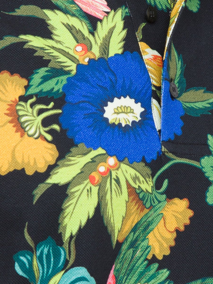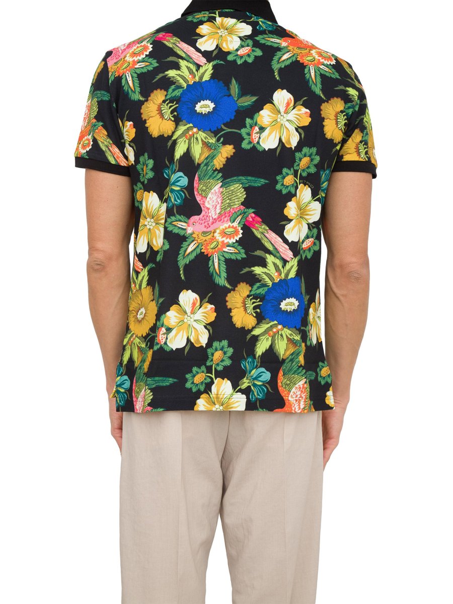 Polo in piquet di cotone decorata con stampa floreale multicolor all over. Il modello è impreziosito da Pegaso e logo ETRO ricamati sul petto.
