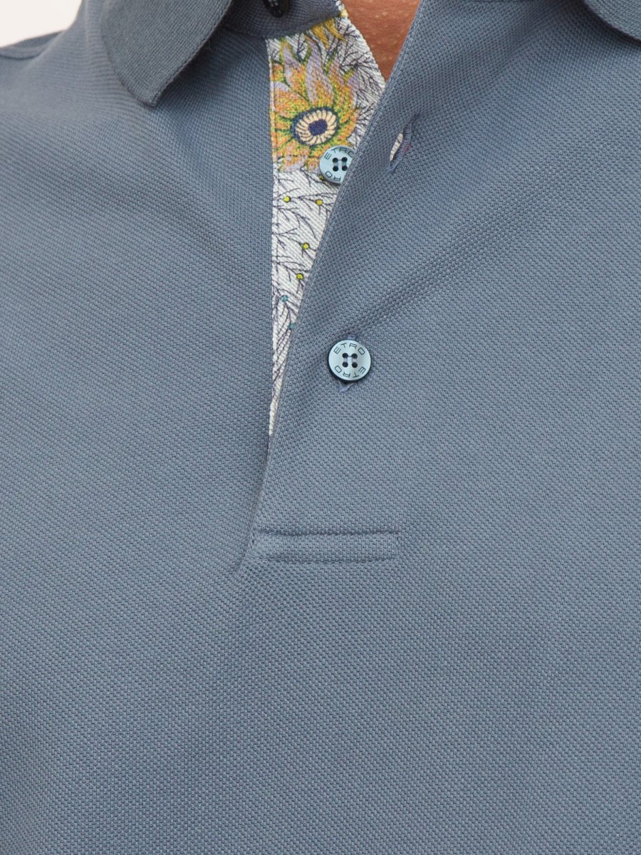 Polo in piquet di cotone decorata con dettagli stampa floreale. Il modello è impreziosito da Pegaso e logo ETRO ricamati sul petto.