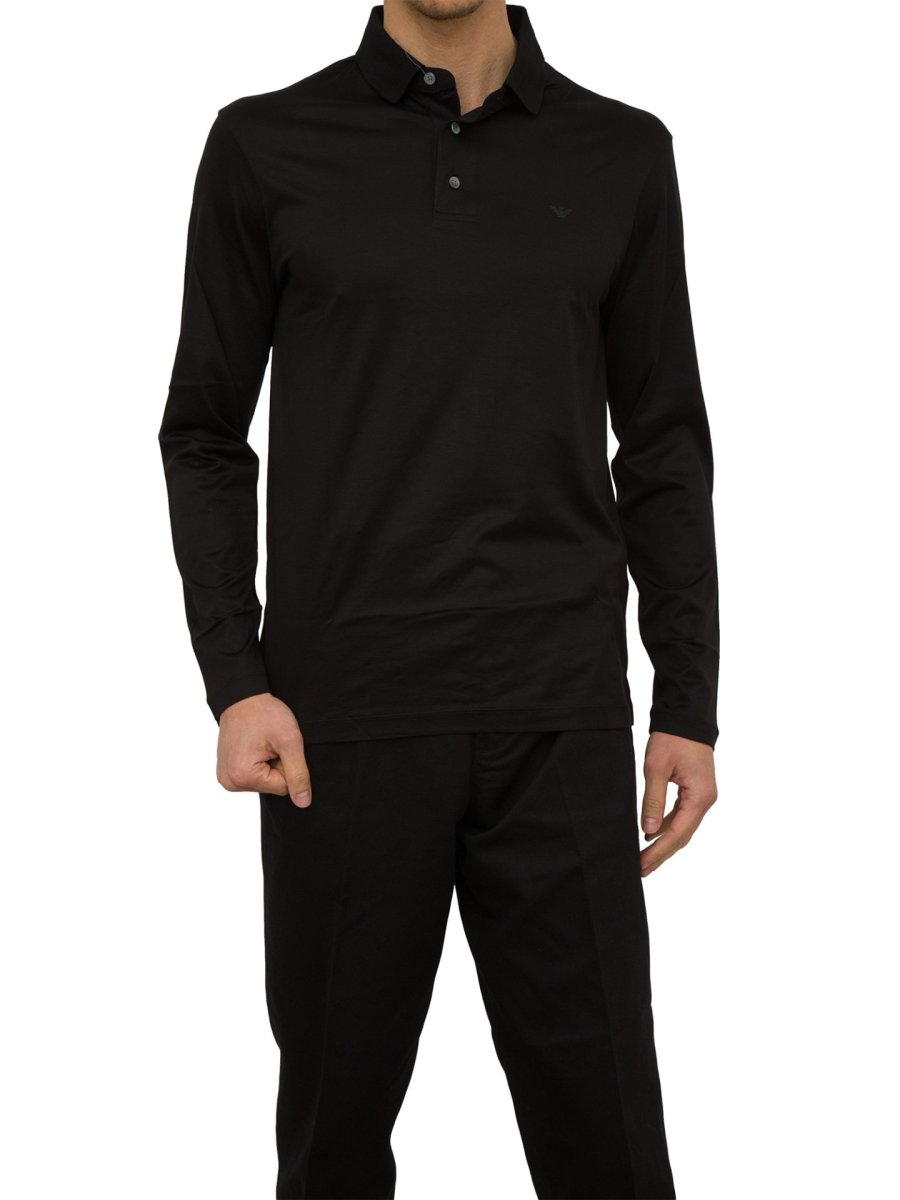 Polo da uomo Emporio Armani realizzata in misto lyocell, mini logo gommato tono su tono, maniche lunghe e vestibilità regular.