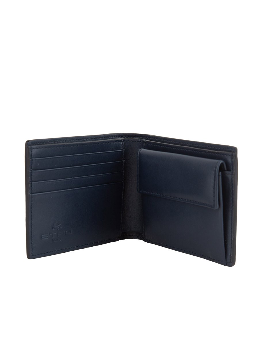 Portafoglio Etro in pelle con motivo Pegaso, design bi-fold, logo interno impresso, slot per carte interni e tasca portamonete.