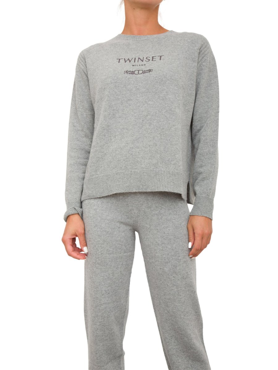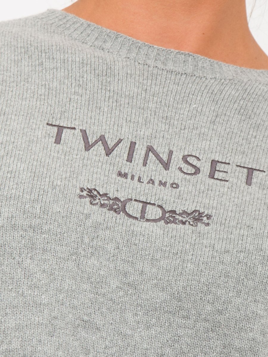Свитер Made in Italy из смеси шерсти и вискозы простой вязки, круглый вырез горловины, длинные рукава, контрастный вышитый логотип спереди, ребристые профили, мягкий крой.