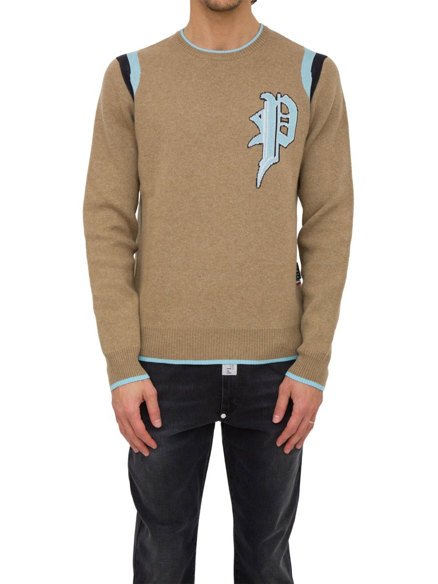 Pullover da uomo Philipp Plein realizzato in misto viscosa con girocollo e maniche lunghe.