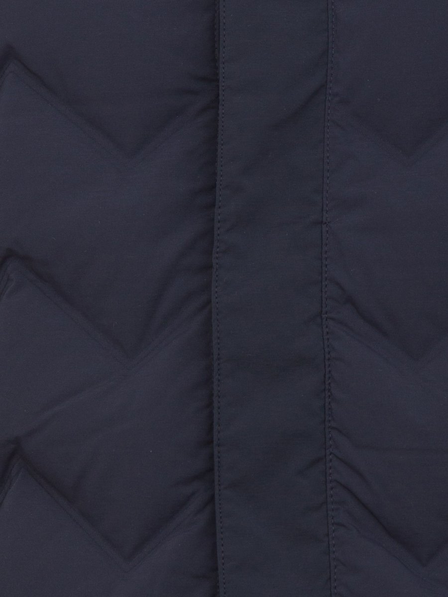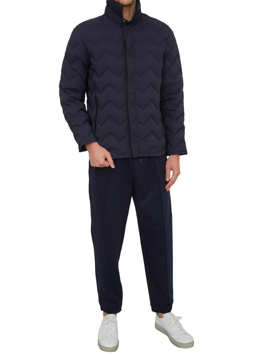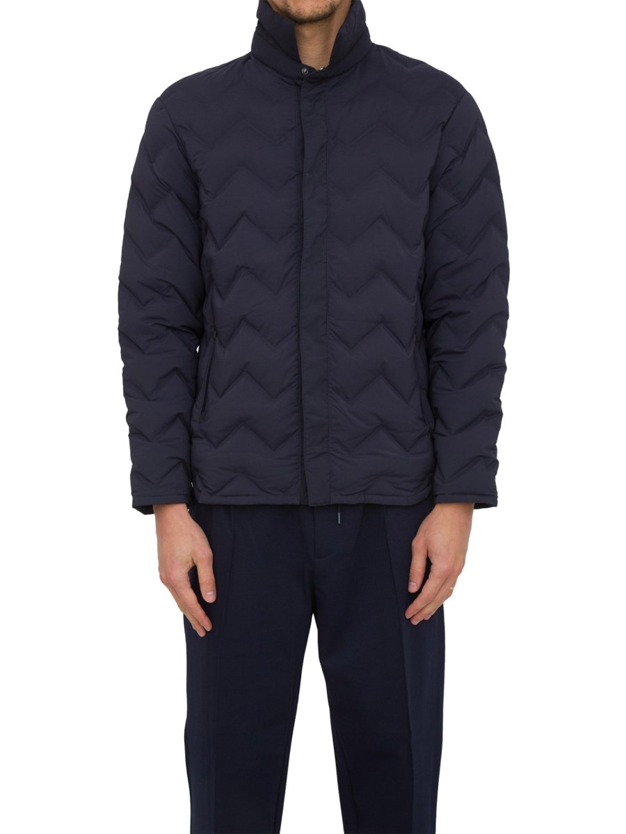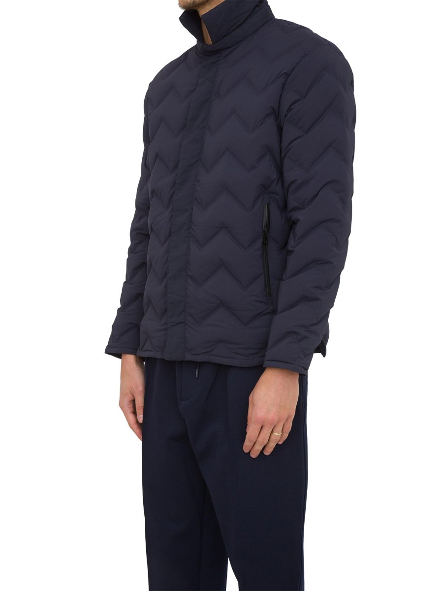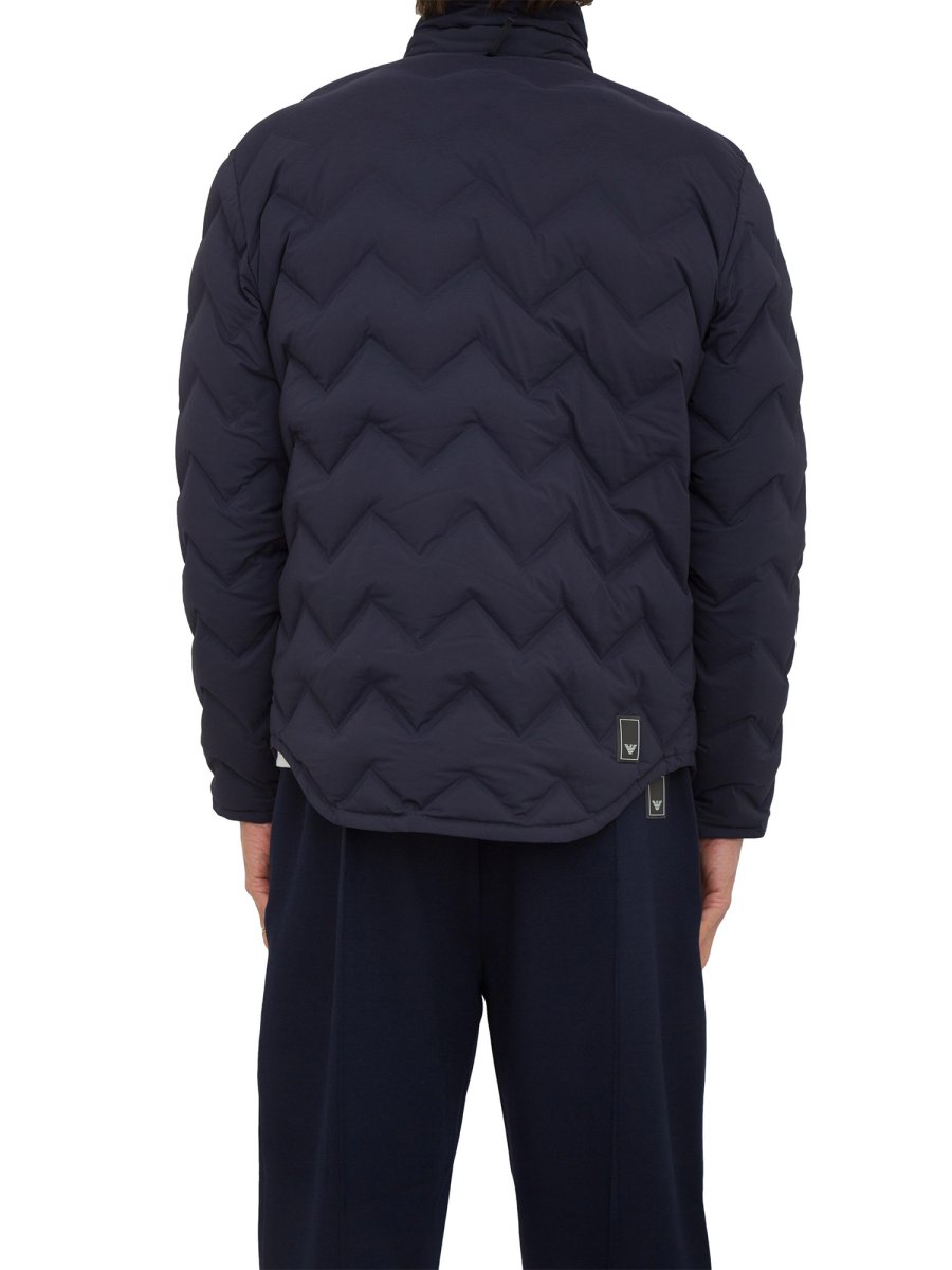 Piumino con motivo chevron Emporio Armani, design elasticizzato, applicazione posteriore con logo, caratteristico ciondolo a testa di aquila, colletto classico, chiusura frontale nascosta, maniche lunghe, due tasche laterali con zip e fodera integrale.