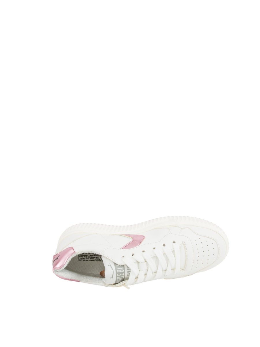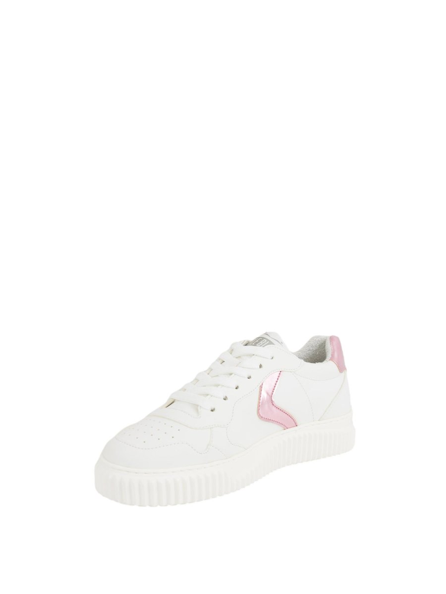 Sneaker in pelle vegetale, con dettagli platinati e materiali sostenibili. Topponcino con logo e suola bold in gomma rigenerata con bordo zigrinato.