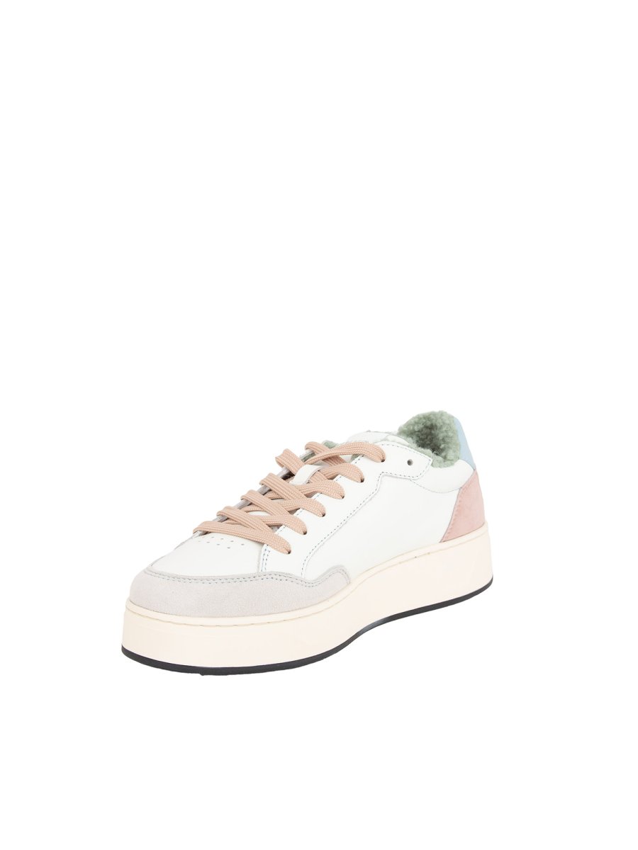 Sneakers Pinko da donna realizzata con tomaia in pelle con lacci a contrasto. Sottopiede in tessuto e fondo in gomma alto 4 cm.