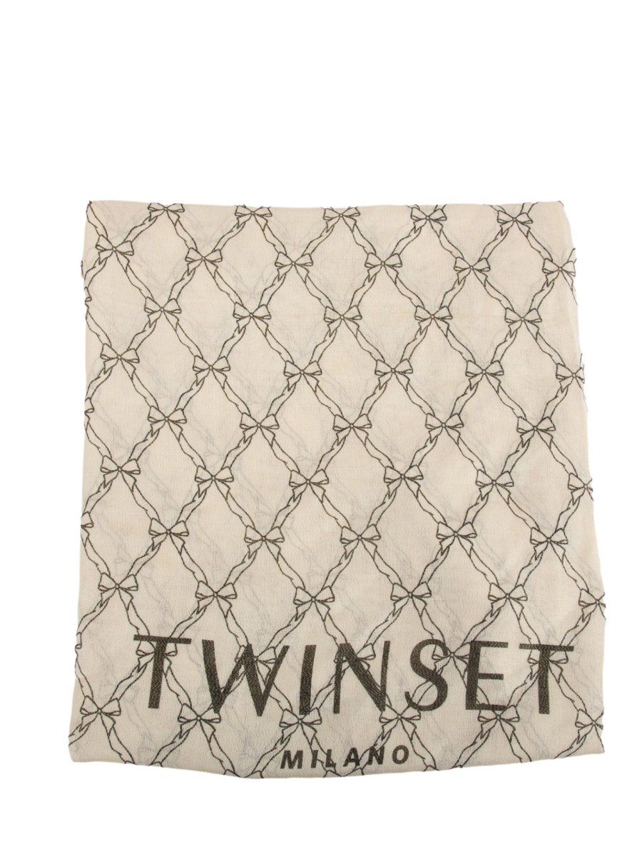 Шарф Twinset 70x200 см из модала с люрексом и графическим принтом в виде мини-бантиков по всей поверхности и контрастного буквенного логотипа. Идеально подходит для стильного дополнения любого образа.