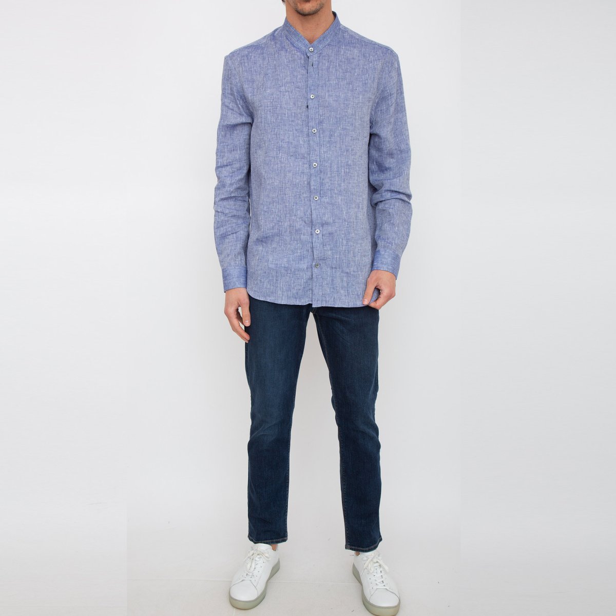 - Мужская рубашка с длинным рукавом EMPORIO ARMANI SHIRT BLU