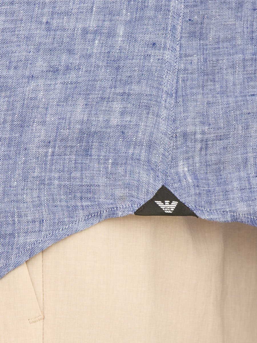 Camicia da uomo Emporio Armani in lino con collo alla coreana, maniche lunghe, vestibilità regular e chiusura con bottoni.
