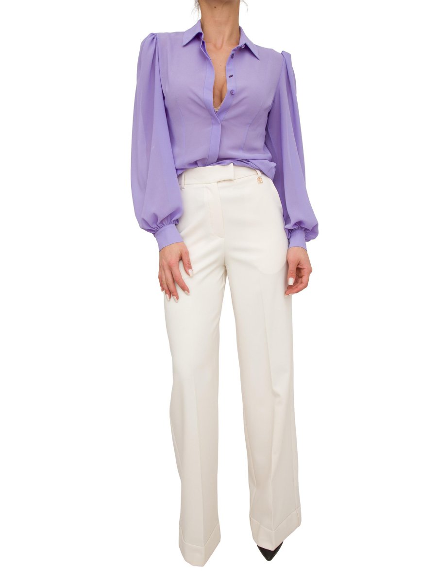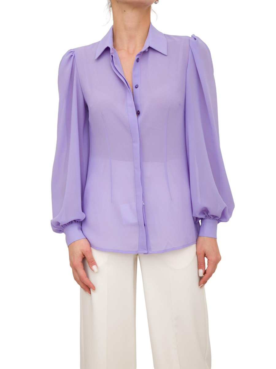 Camicia regular in georgette, colletto classico, apertura centrale con bottoni nascosti, e con maniche lunghe.