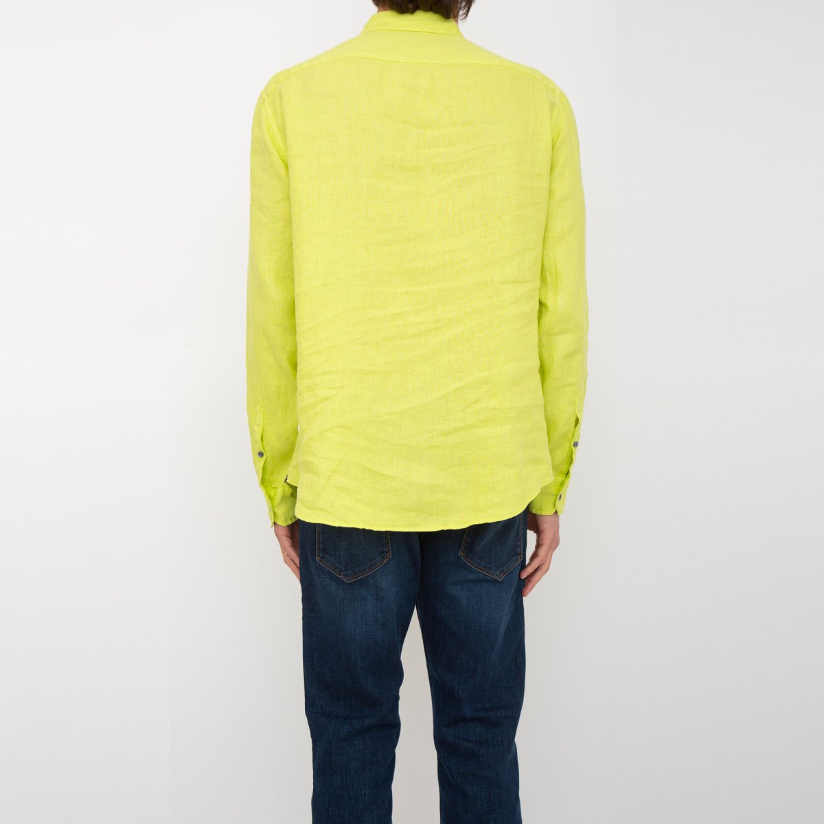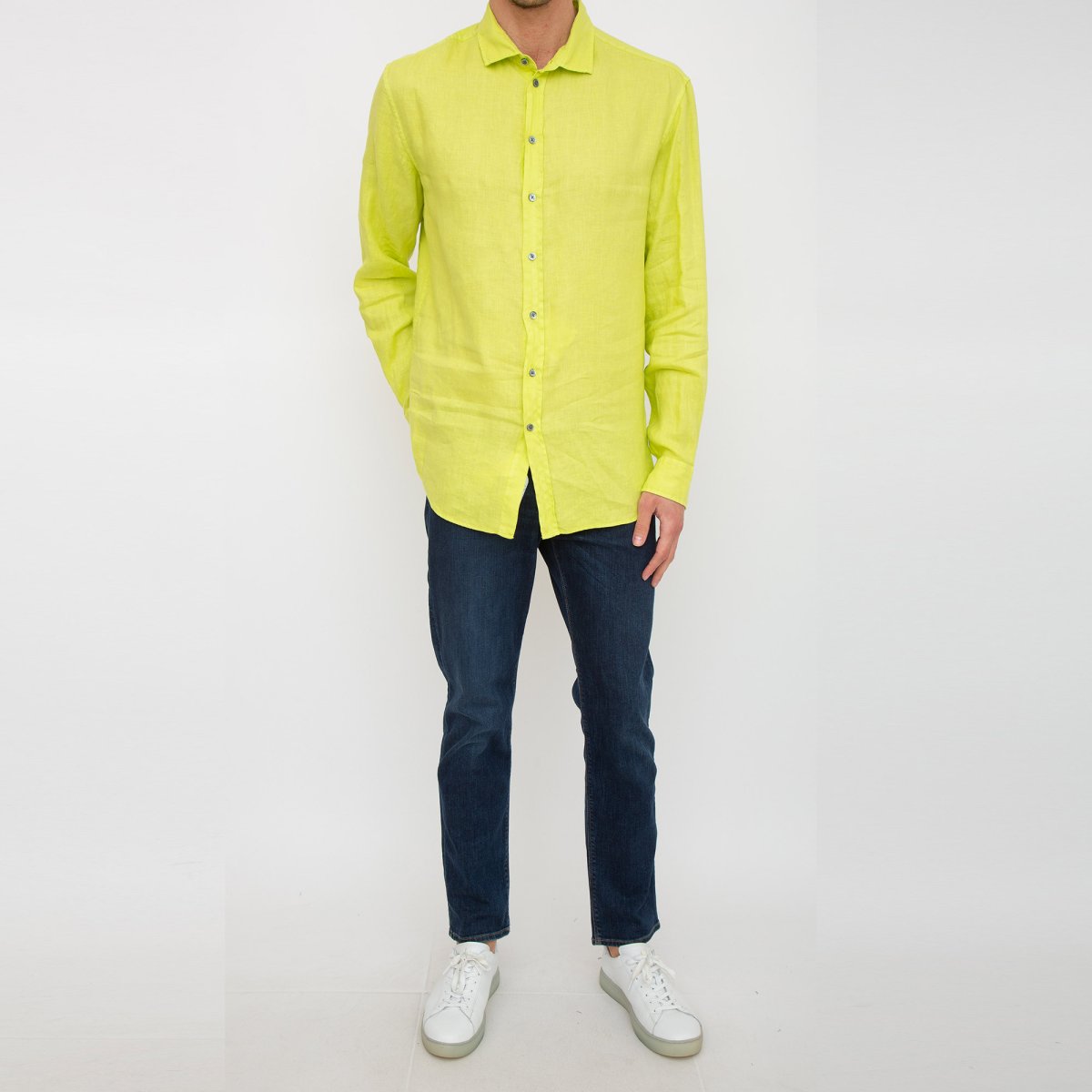 Camicia a maniche lunghe, lino/fibra di lino, colletto classico, chiusura frontale con bottoni, maniche lunghe e orlo dritto.