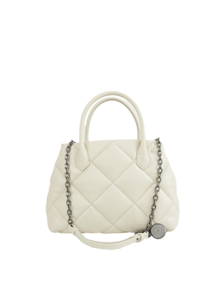 Borsa shopping EMPORIO ARMANI in similpelle trapuntata, tracolla a catena con inserto in pelle, manici rigidi. Tre tasche interne: una con chiusura lampo e due aperte, logo aquila.