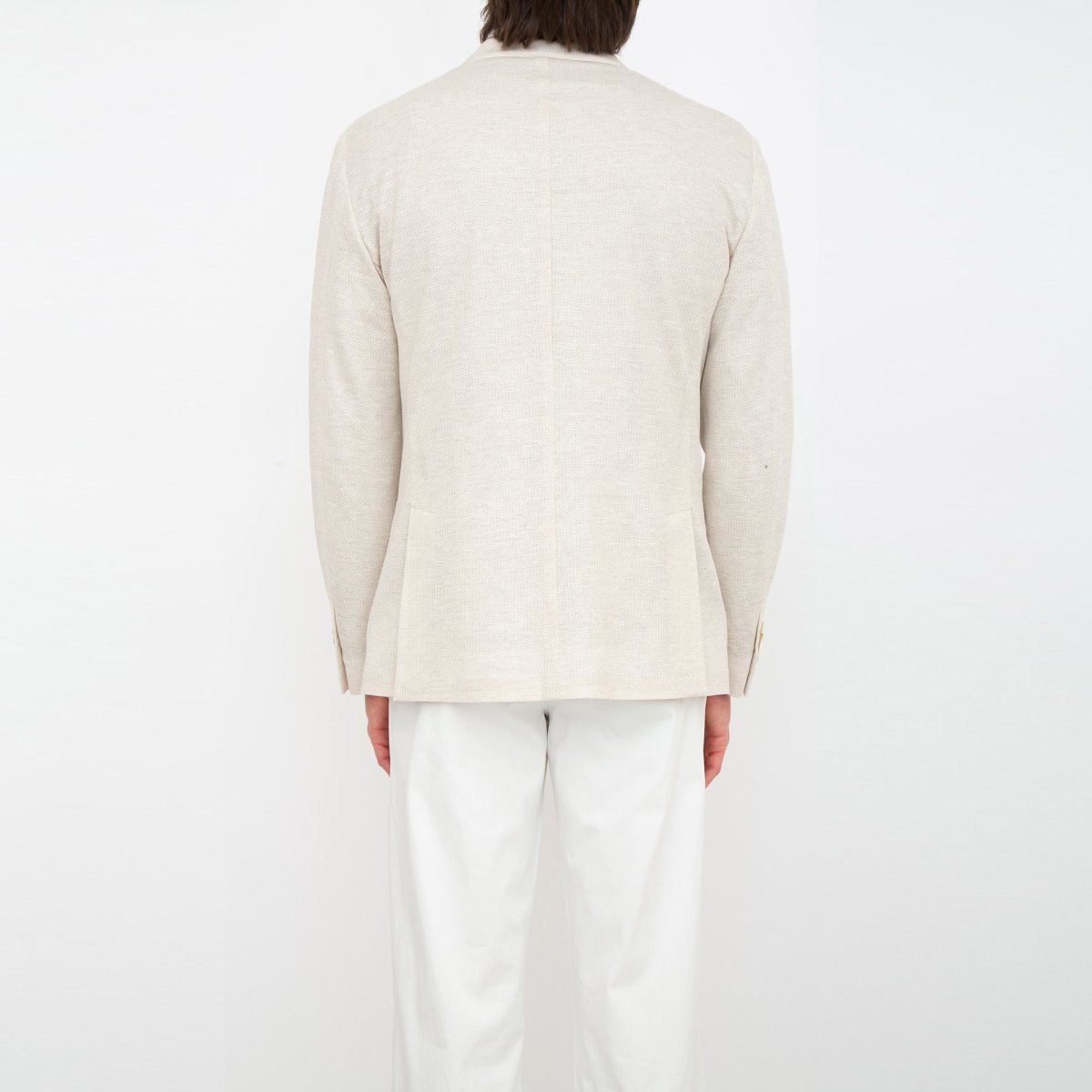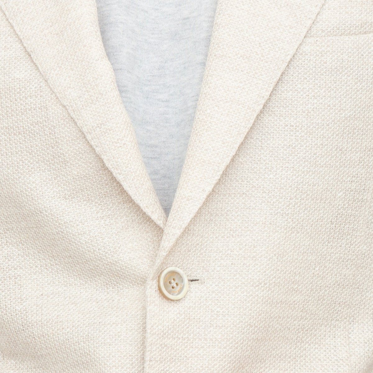 Giacca misto lino e cotone, design elasticizzato, finitura in rilievo, revers a punta, chiusura frontale con bottoni, tasca a filetto sul petto, due tasche applicate frontali, maniche lunghe e orlo dritto. Questo articolo contiene almeno il 50% di materiali certificati o ampiamente riconosciuti per il loro basso impatto ambientale, grazie a processi di produzione e/o manifattura che riducono il consumo di acqua e l'uso di sostanze chimiche dannose, o prevedono il riutilizzo di sottoprodotti del processo di produzione.