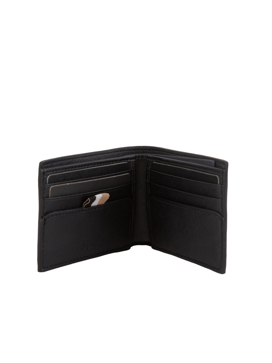Portafoglio Boss tinta unita realizzato in pelle con logo a contrasto.