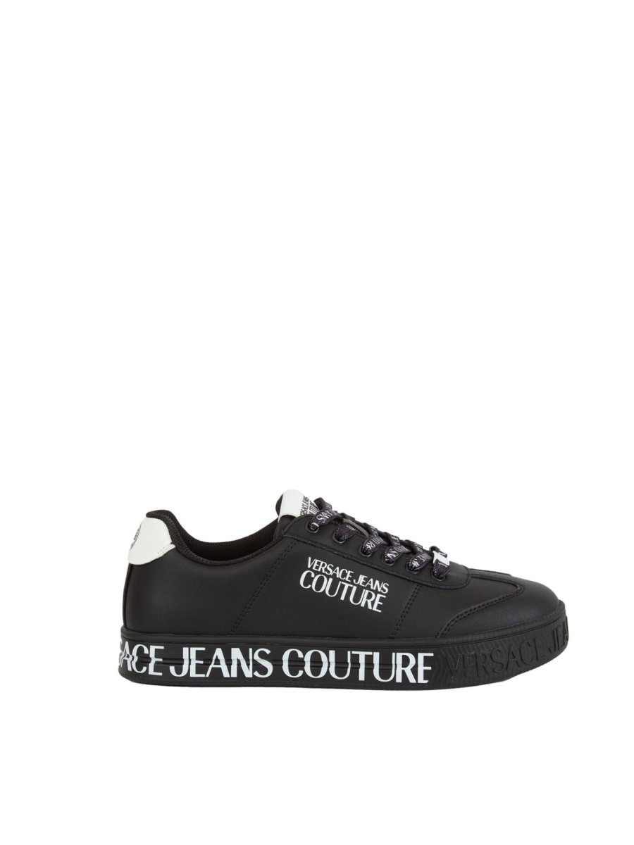 Sneakers basse Versace Jeans Couture realizzate in mista pelle, stampa con logo sul lato e sull'intersuola e una personalizzazione con logo Institutional sui lacci con logo stampato.
