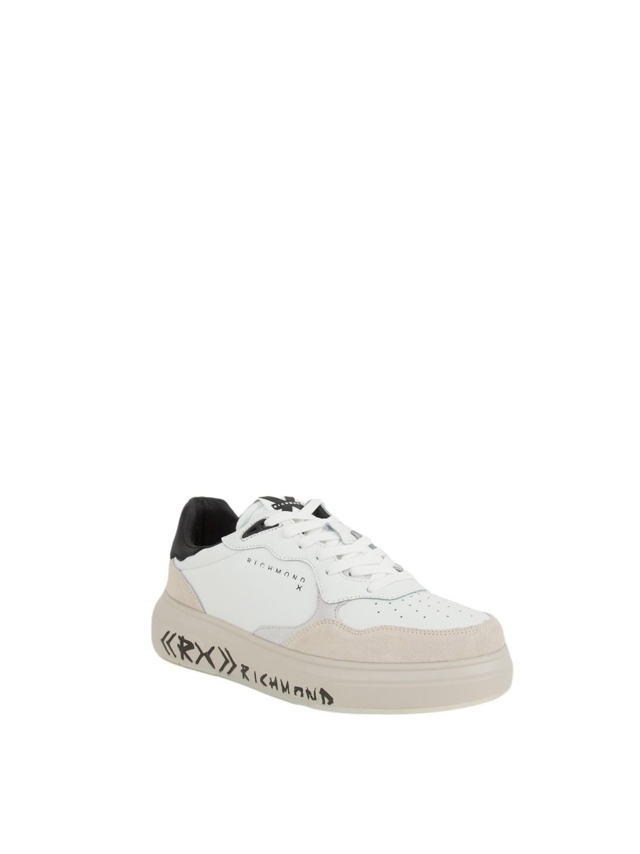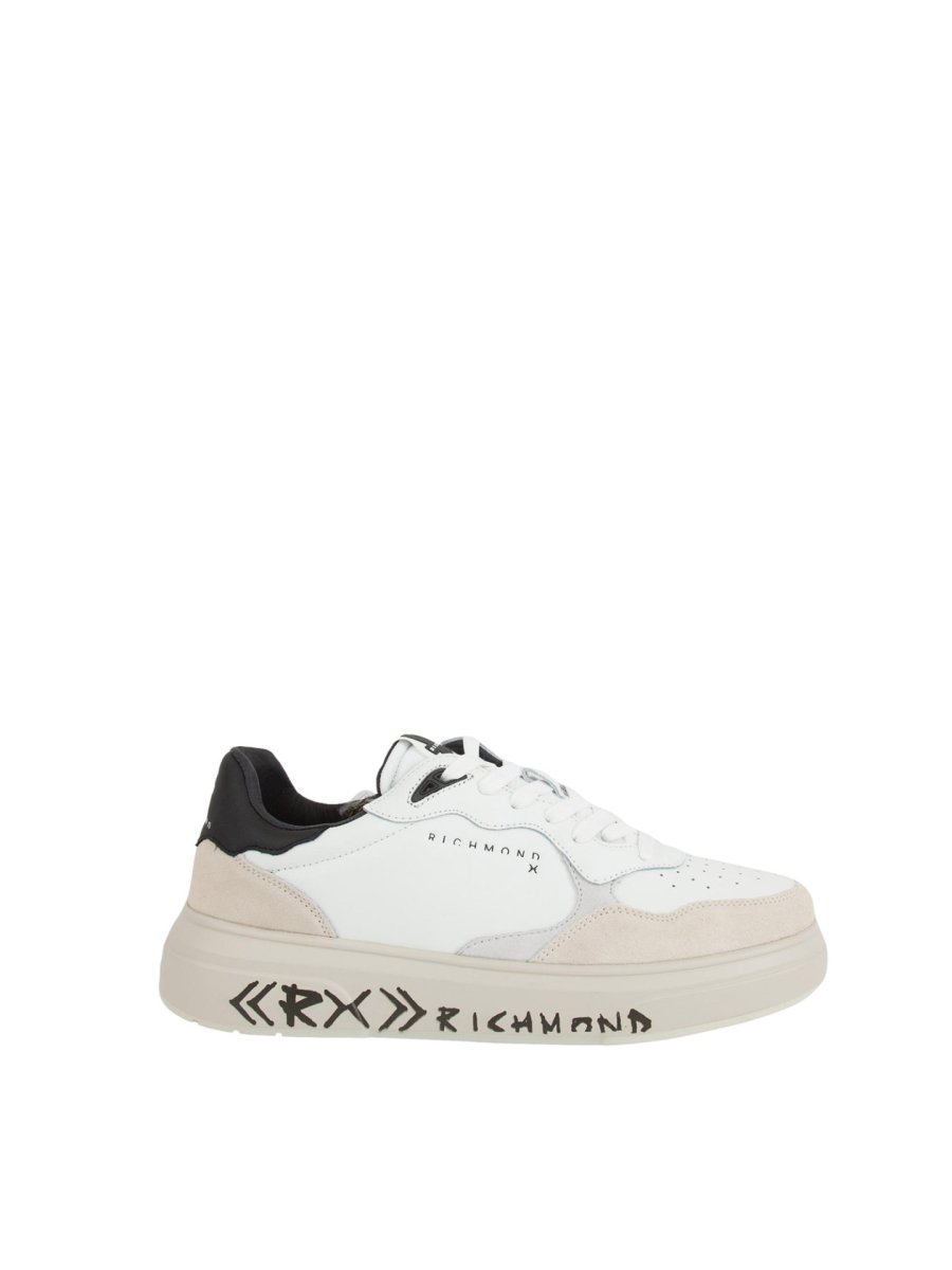 Sneakers John Richmond realizzate in pelle e suede con retro a contrasto colore nero e logo lettering sulla para formato graffiti.