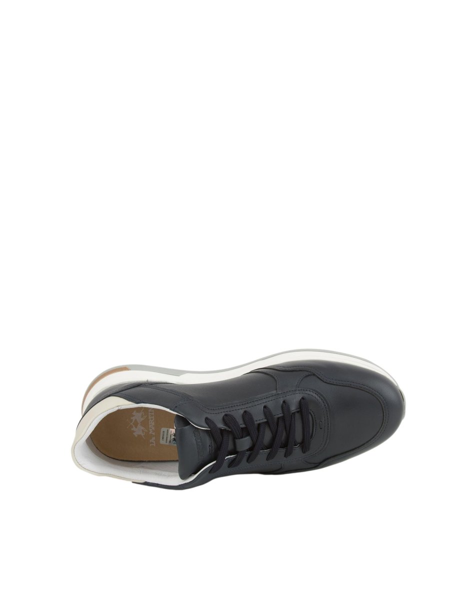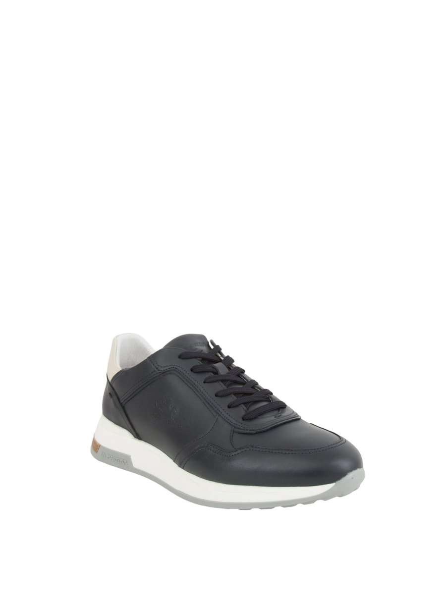 Sneaker da uomo tinta unita, realizzata in pelle. La suola bicolore logata è in EVA leggera e rialzata per maggior confort, impreziosita dall'inserto in cuoio sul fondo. Il logo è impresso in rilievo sul laterale della scarpa. La linguetta è impreziosita dal patch in pelle a contrasto con scritta impressa a fuoco e impuntura a mano.