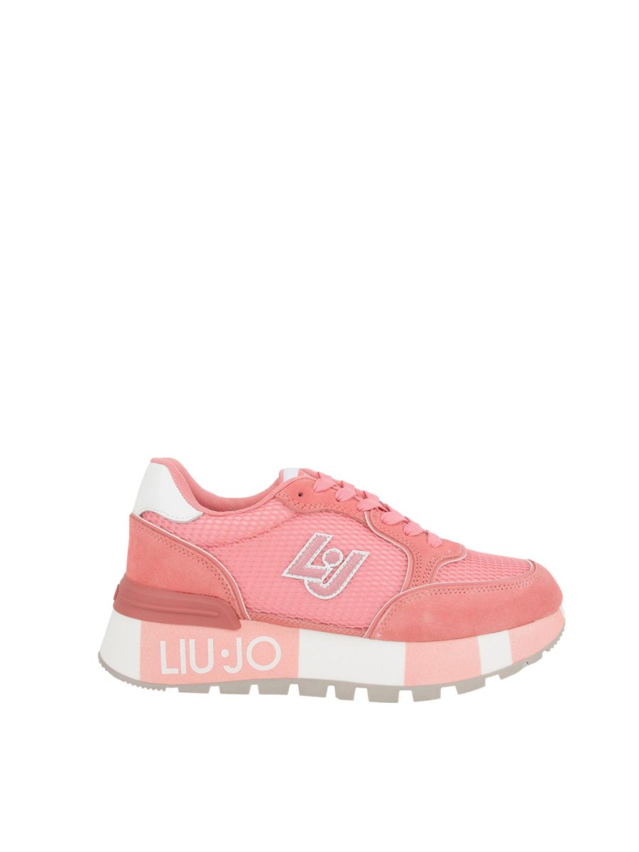 Sneakers Liu-jo da donna con tomaia in suede e mesh tono su tono, logo bold con glitter, lacci piatti, suola platform colorblock glitterata, spoiler posteriore con logo, battistrada dentellato e altezza suola: 5 cm.