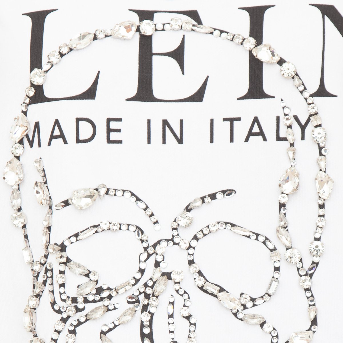 Maglia girocollo realizzata in felpa di cotone e decorata con l'iconico Skull stampato a cristalli. Il lettering del brand campeggia sul fronte e PP Hexagon su patch di pelle è cucito sul carré. Tutti i bordi sono smacchinati a costina.