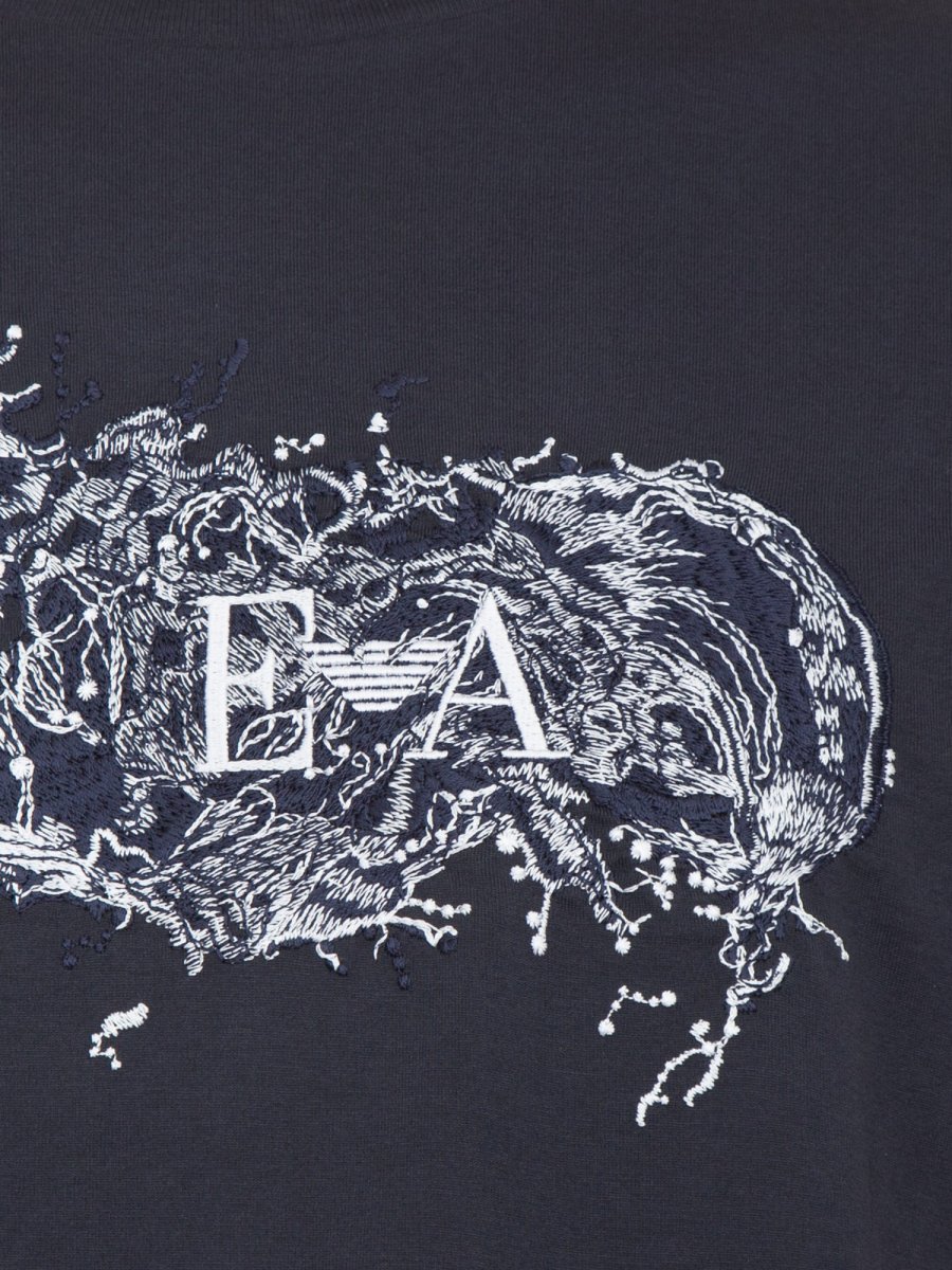 Футболка с круглым вырезом из чистого хлопкового трикотажа с логотипом EA спереди и вышивкой коллекции, изображающей оригинальный движущийся объект с морскими волнами, разбивающимися о скалы.