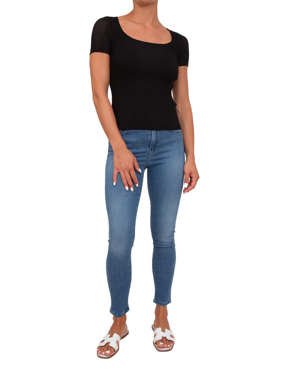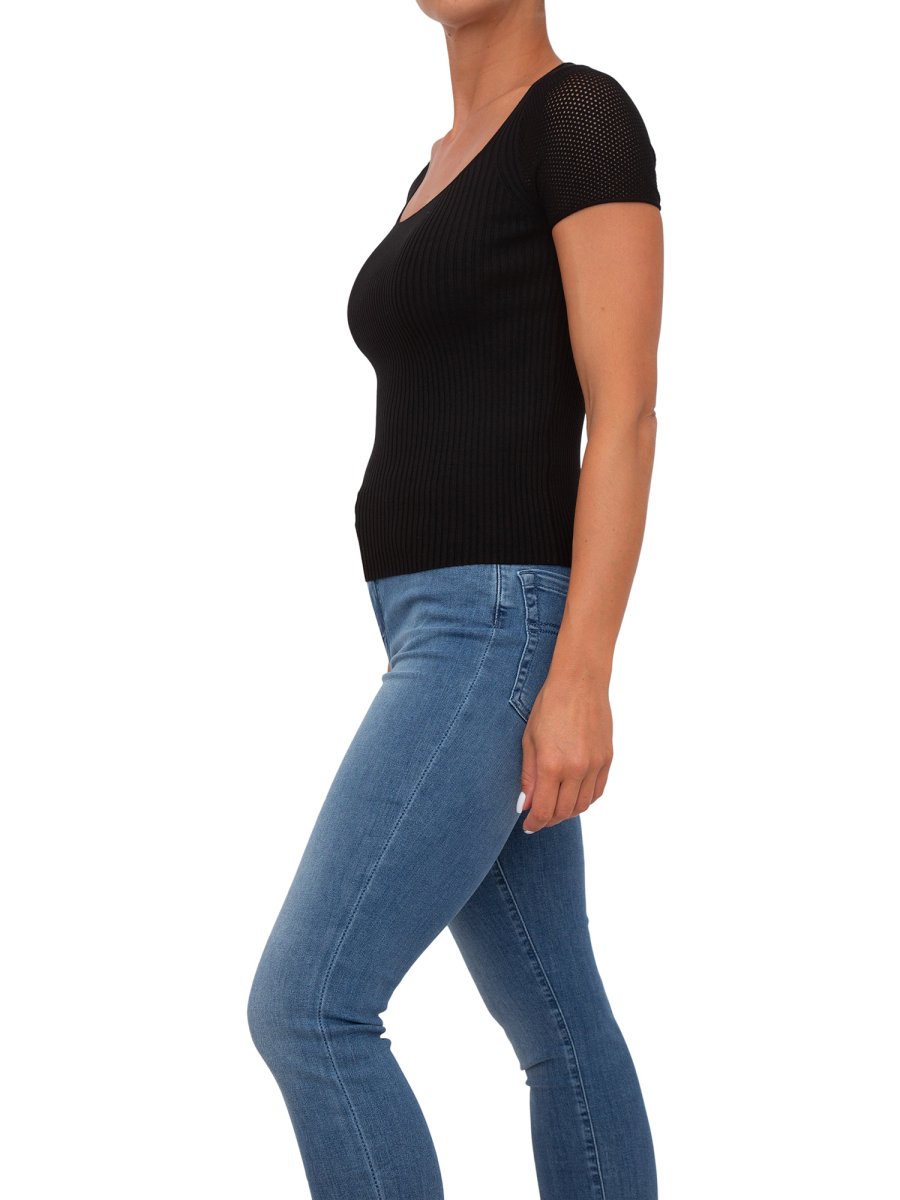- Описание62% VISCOSE 38%Maglia Marella in misto viscosa a coste, linea aderente. Scollo quadrato ampio, maniche corte traforate.