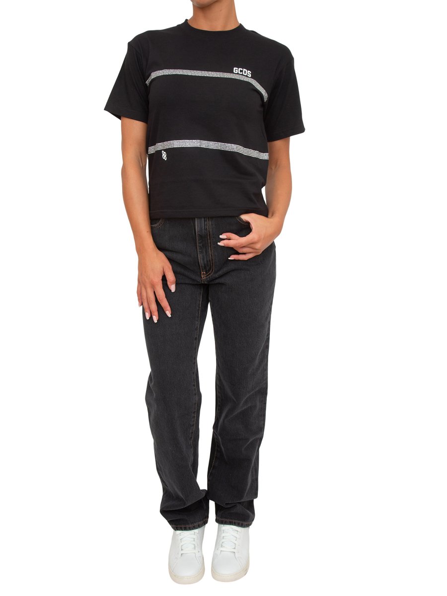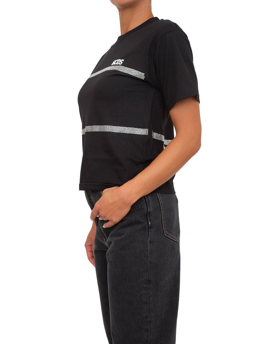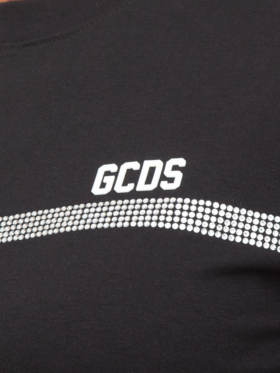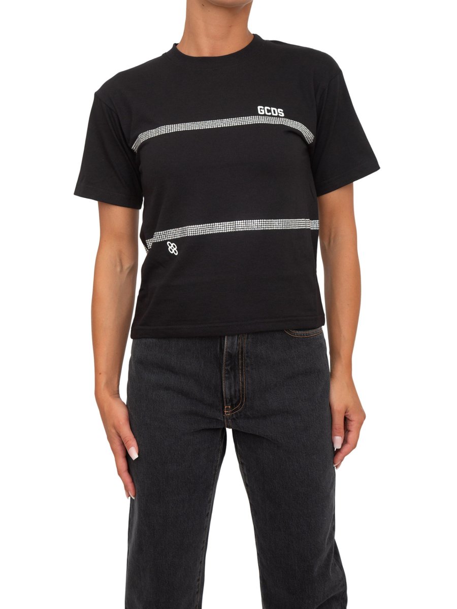 T-shirt in cotone con grafica banda logo GCDS con cristalli outline. Vestibilità regular.